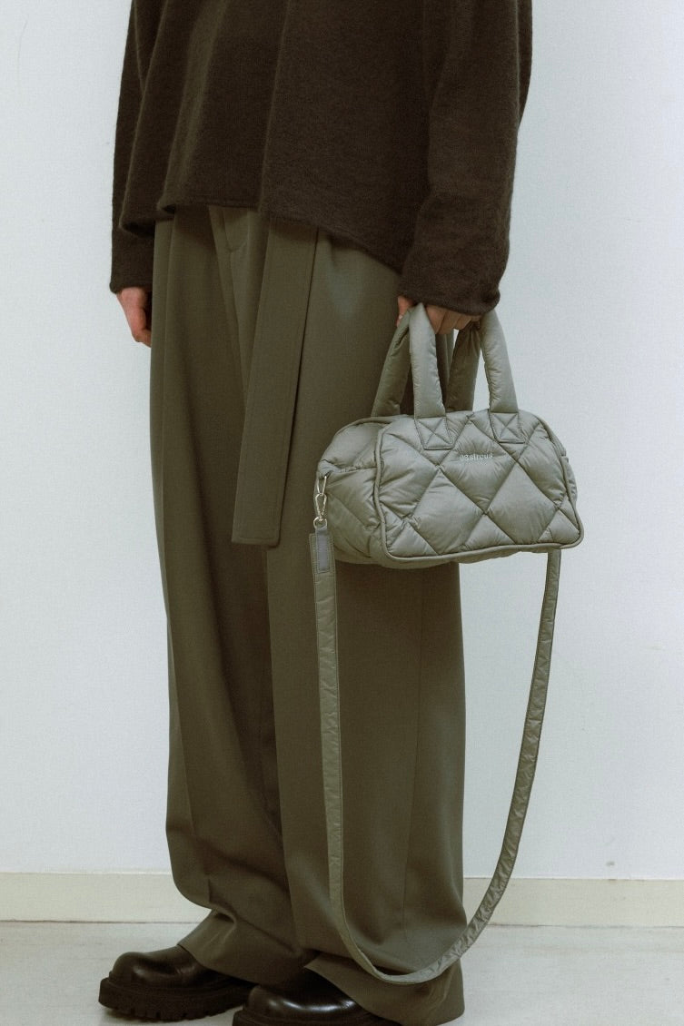 日本のインナーダウンブランド“TAION”とのコラボレーションにより生まれた、ダウン入りのミニボストンバッグ。