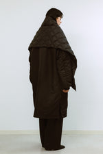 フロントのボタンを留めることでウェアライクなシルエットを形成し、裏側のループに本体を通すことでストールとしても使用可能。着用方法によってフォルムと印象に変化を与える、機能性とデザイン性を兼ね備えた1着。