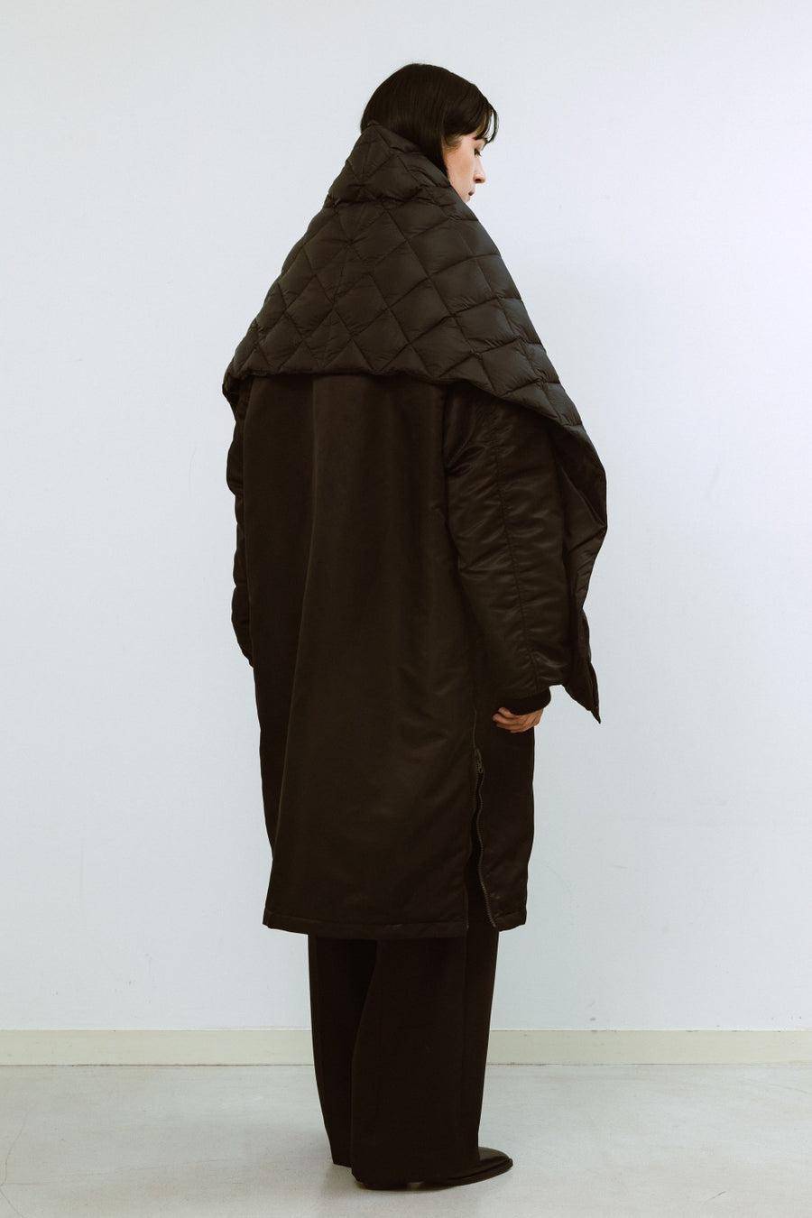 日本のインナーダウンブランド“TAION”とのコラボレーションにより生まれた、包み込むような暖かさとボリュームを兼ね備えたダウンストール。