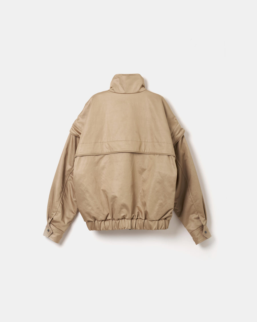 ヴィンテージレザーのような質感が特徴的なショートブルゾン。