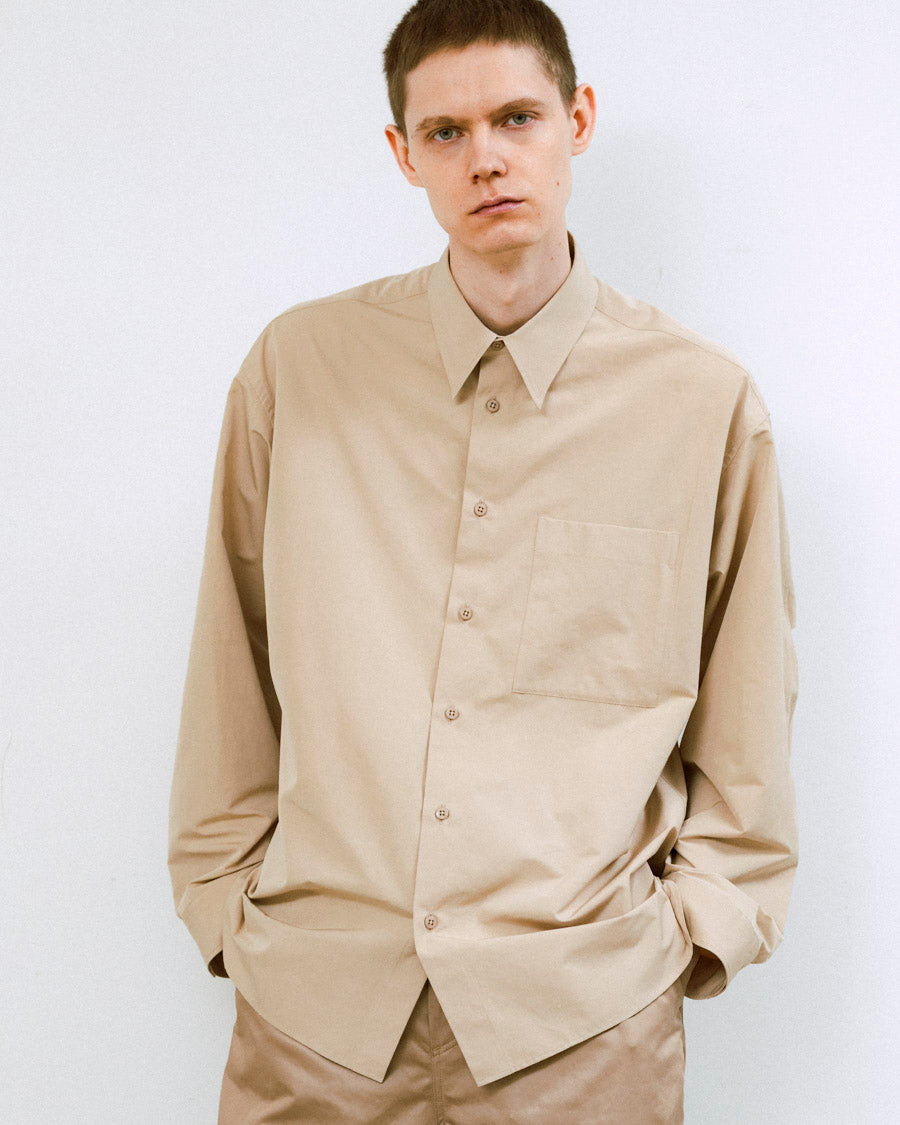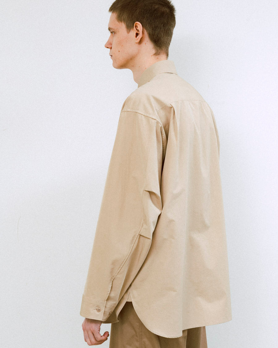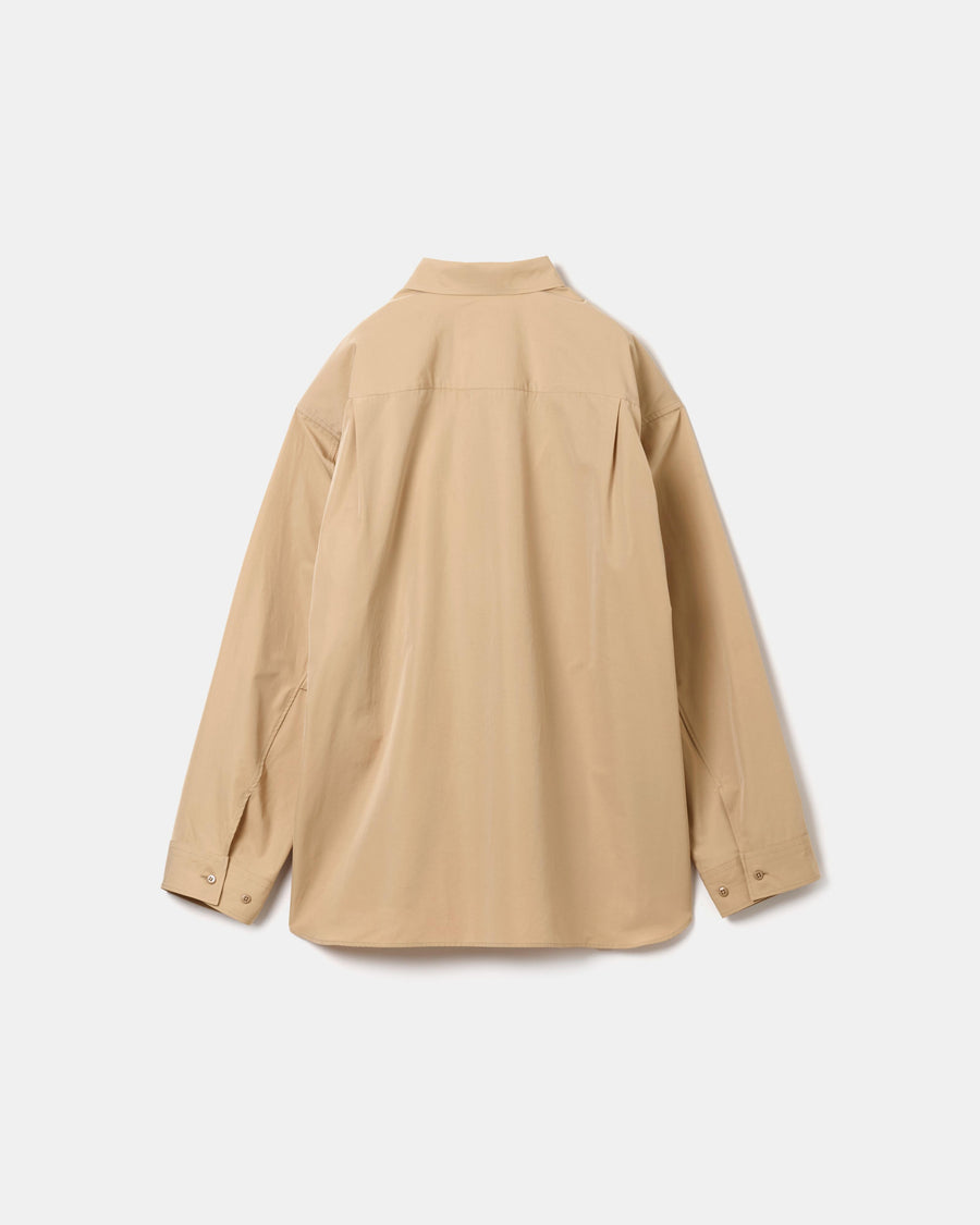 スタンダードなシャツの構造をベースに、袖に大胆なタックを施し、丸みと膨らみを持たせることで、シャツでありながらアウターライクな存在感を持つ1着。