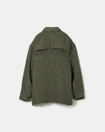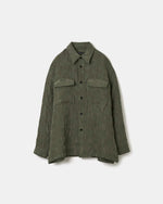 ゆったりとしたボリュームを、シャツとアウターの中間ぐらいのバランスで設計。後のヨークはふらされており抜け感とポイントを加えている。