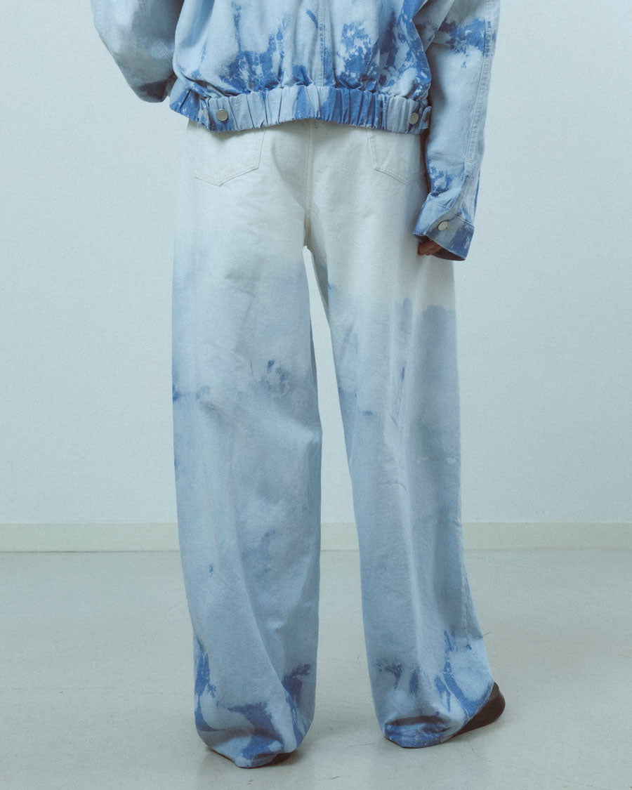 ゆったりとしたワイドな分量感で、サイドシルエットは緩やかに丸みを帯びたバレルラインを描くデザイン。裾側にあえて濃い色を残して重心を低く見せ、ボリュームのあるシルエットに安定感とバランスの良さをもたらした1着。
