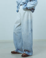 職人の手作業により1点1点製品を絞り、グラデーション状にブリーチを施している。絞った部分にほんのり色が残り、独特のパターンとして浮かび上がる表情の仕上がりに。