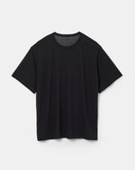 素材は細い綿の糸を繊細に編み上げた天竺を使用。透け感と上品な表面感が引き立つ。ドライタッチの強撚糸で季節的にも着用しやすい。