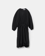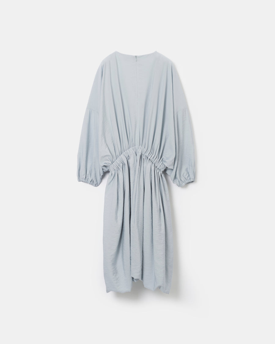 袖口と裾は膨らみを取り入れた柔らかいフォルムに対して、ウエストはゴムでシェイプすることで全体のシルエットに緩急を生み出す。