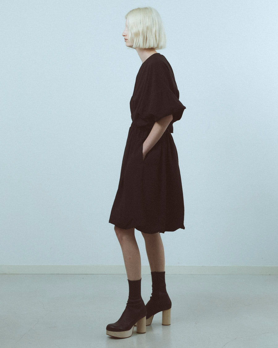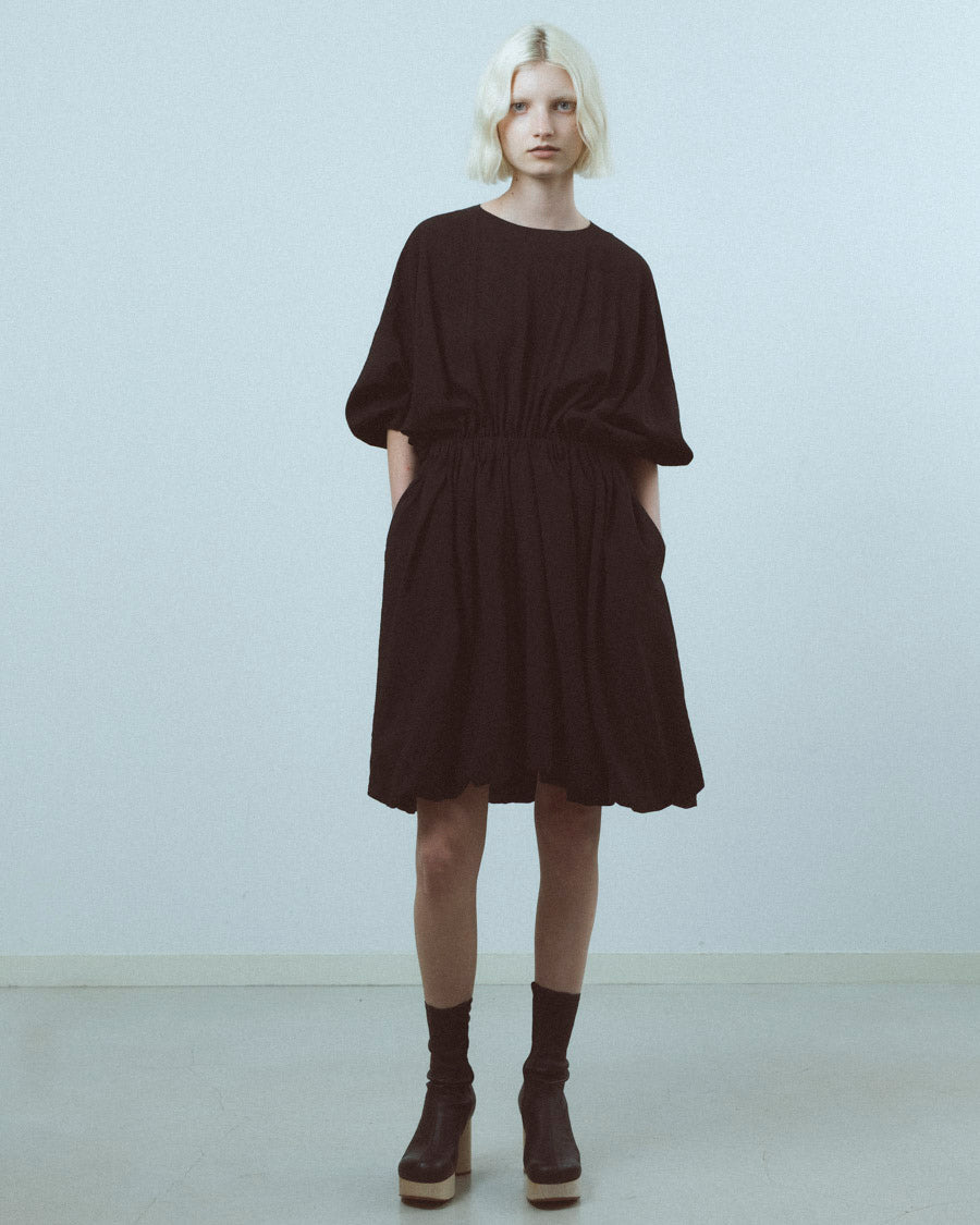 バルーンのようなシルエットのミニドレス。