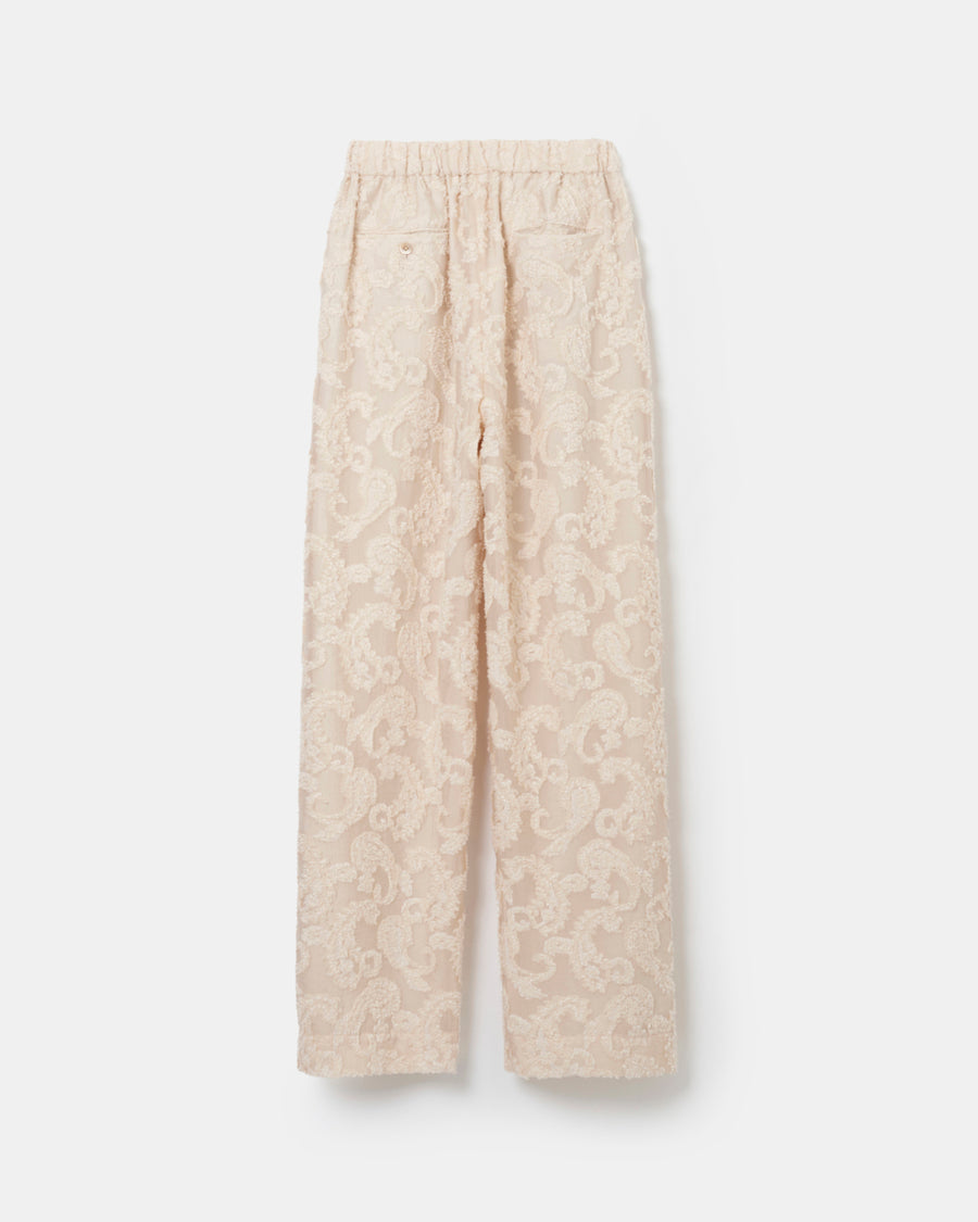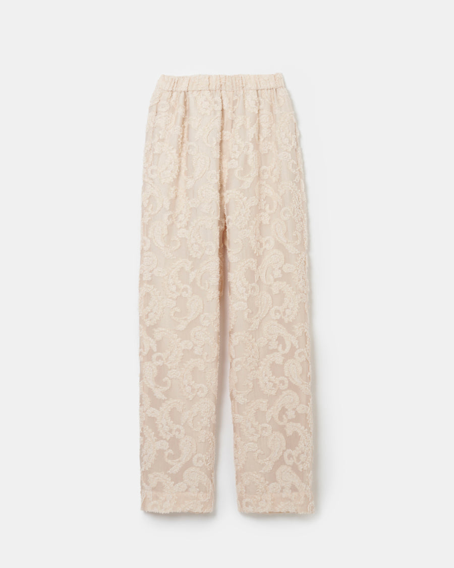 透け感とペイズリー柄が印象的なイージーパンツ。