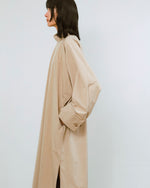 身頃から自然につながるワイドなスリーブは、抜け感を生みながら、着用時に余ったボリュームが美しいシルエットを作り出す。