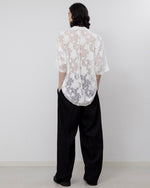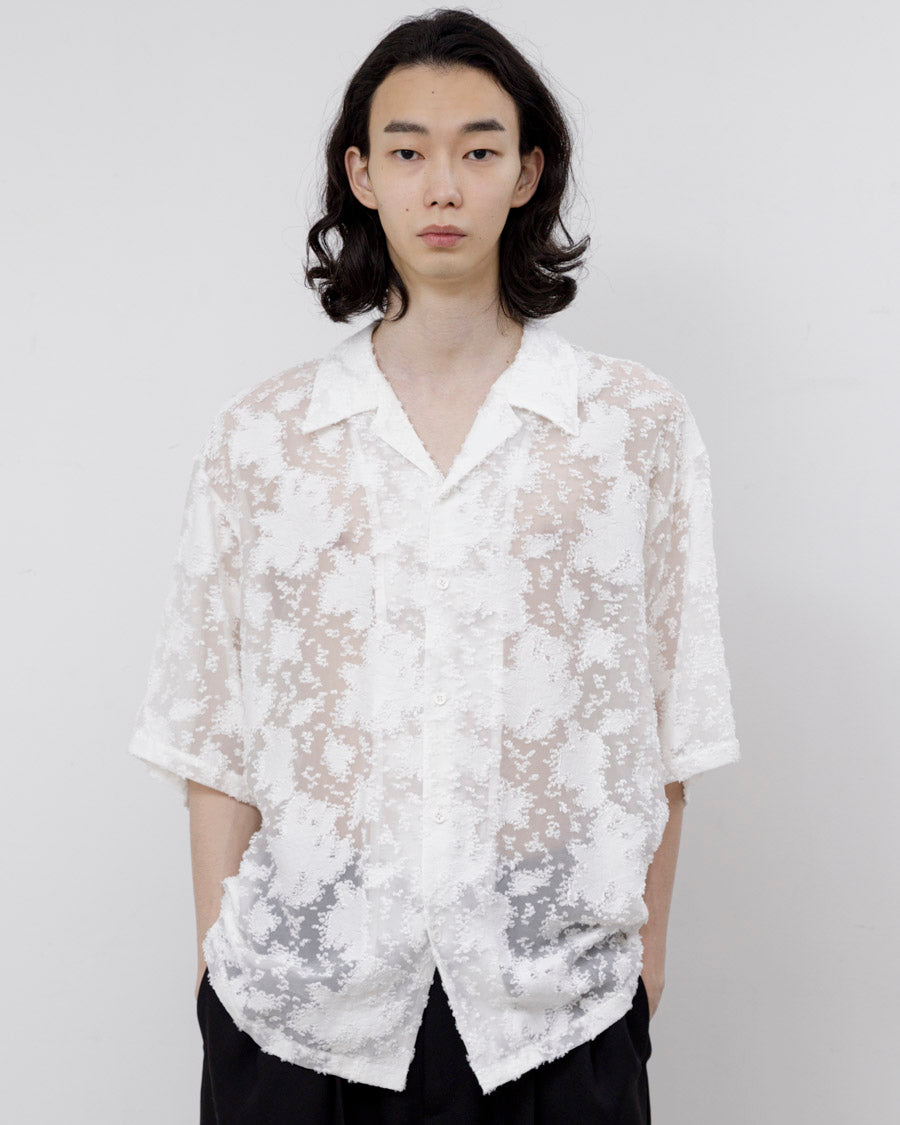 透け感と柄が特徴的なオープンカラーシャツ。