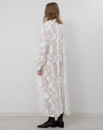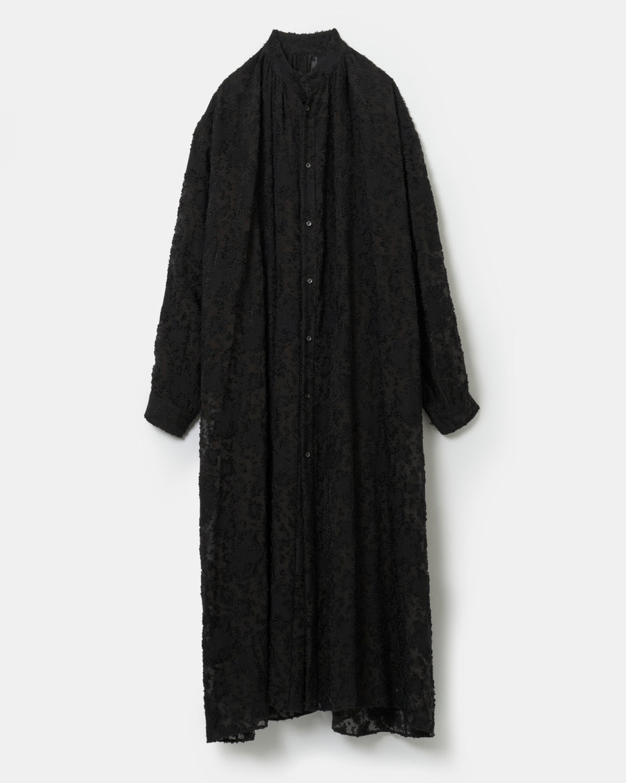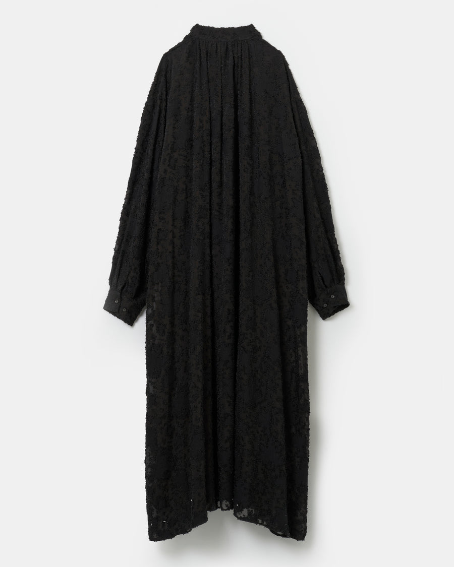 首周りを基点にギャザーを入れ、ゆとりのあるシルエットに仕上げた。たっぷりとした生地のドレープが動くたびに美しい表情を生む。