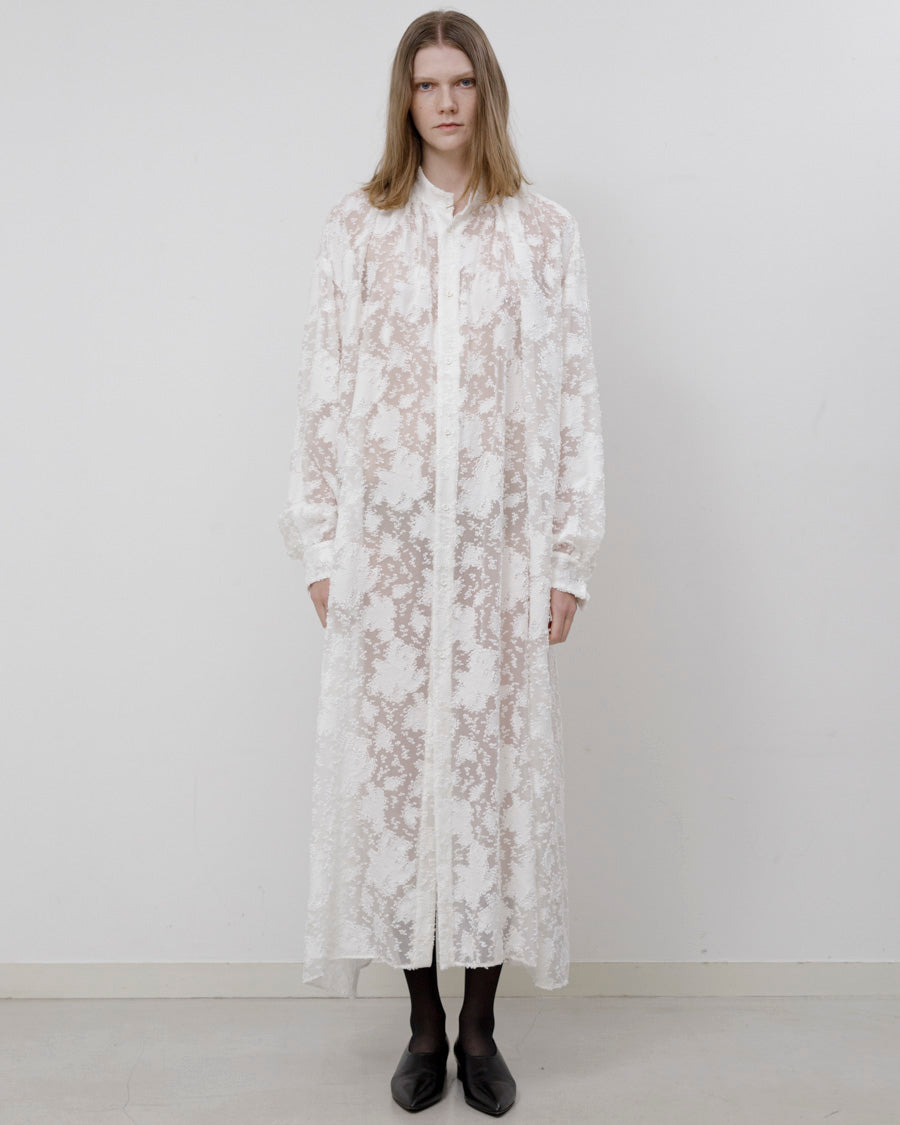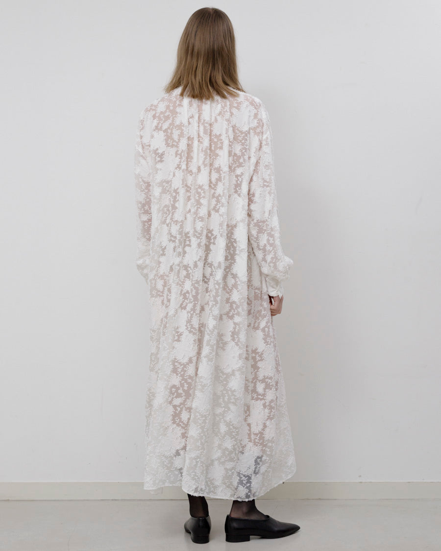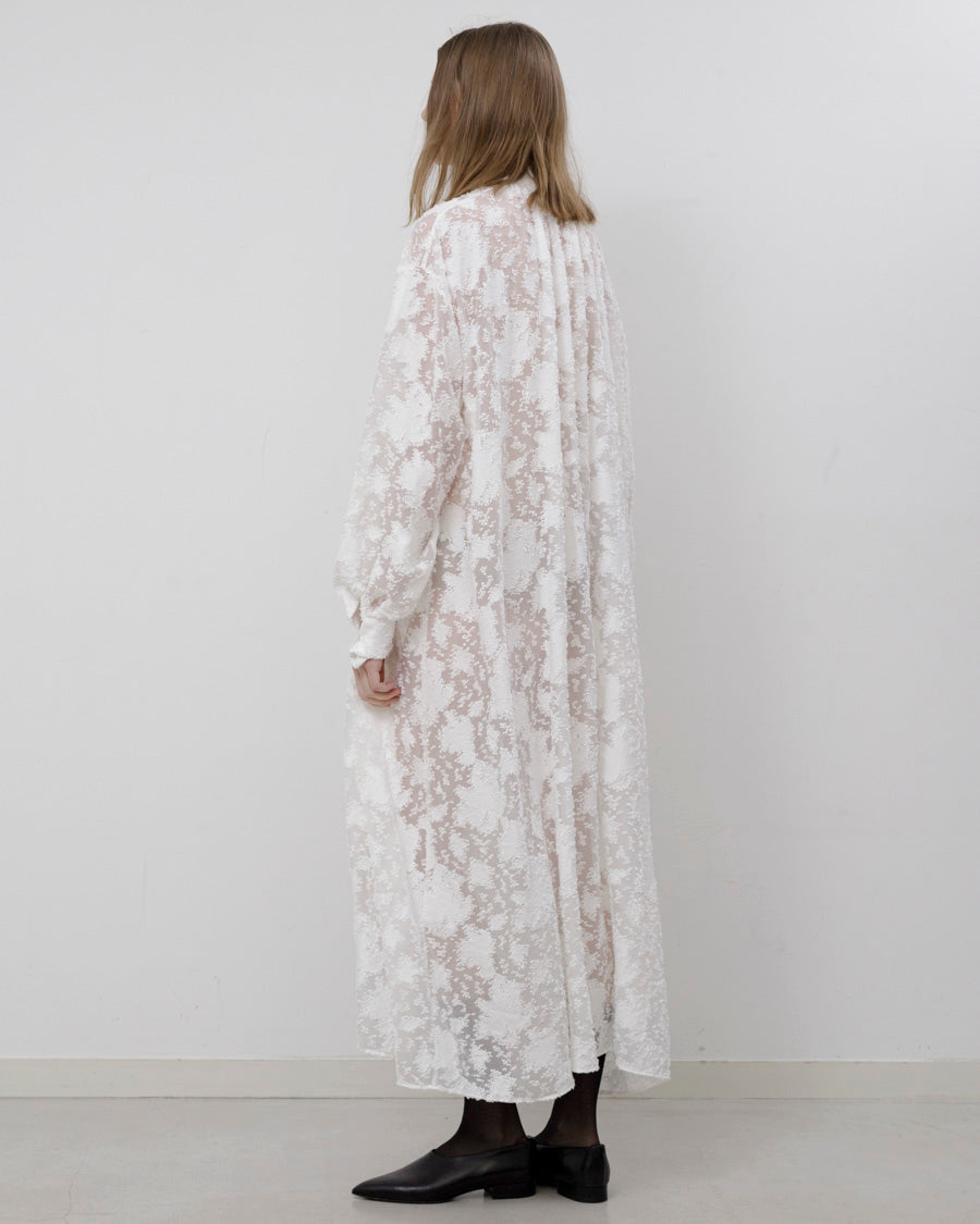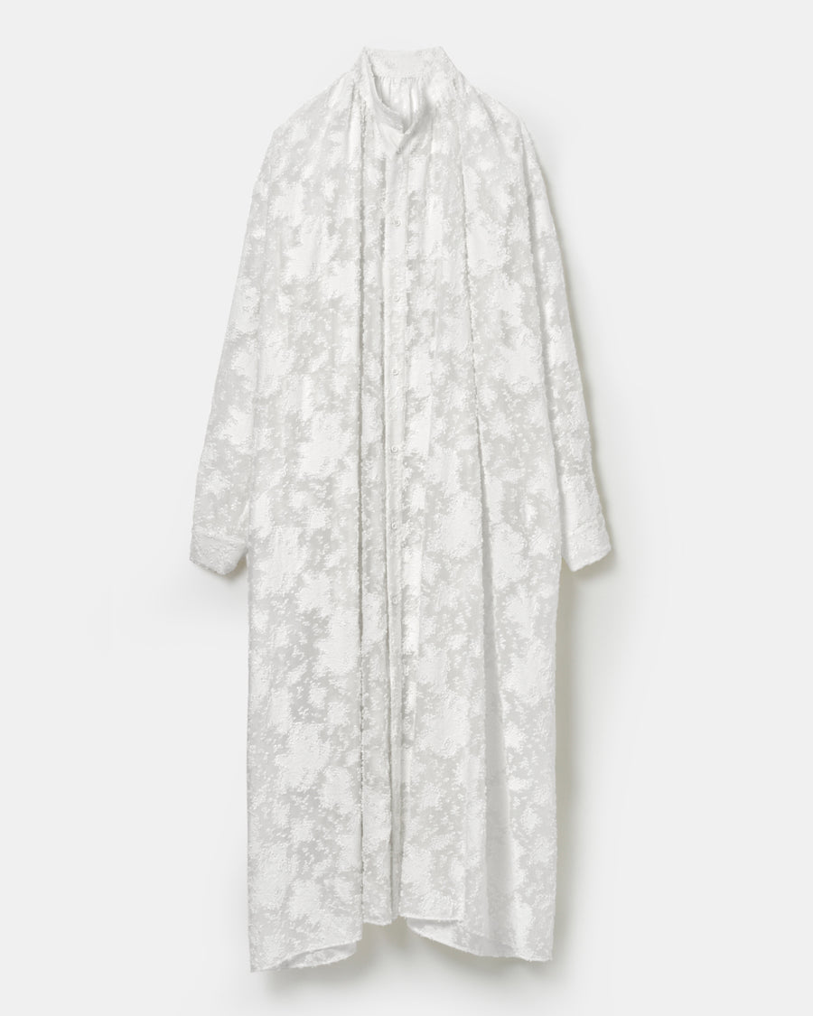 桐生で織り上げたオリジナル柄のカットジャガードオーガンジーは柔らかで軽やかな仕上がり。