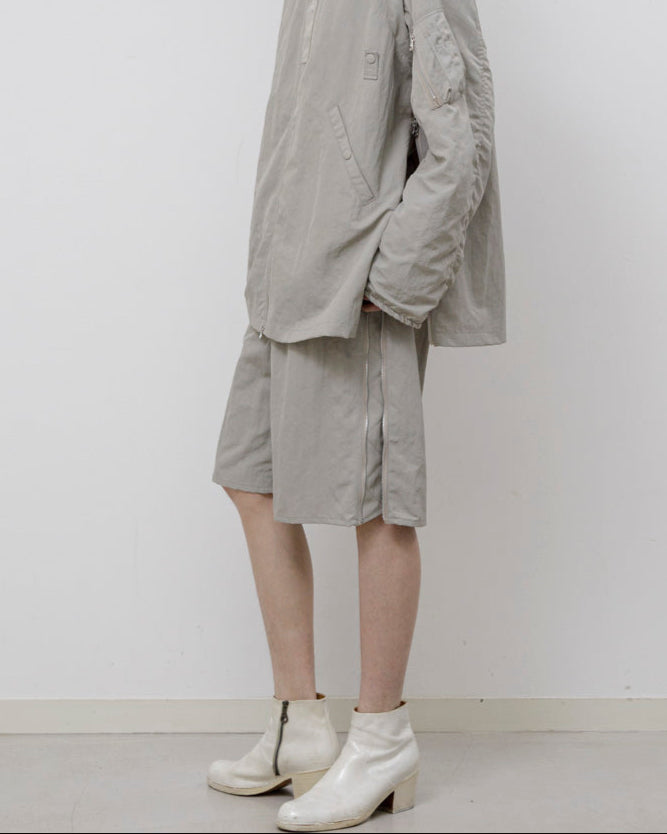 サイドジップを開けることでスリットが現れ、動きのあるシルエットを演出。シンプルながらもディテールにこだわり、ミリタリーとモダンなスタイルを融合させた1着。