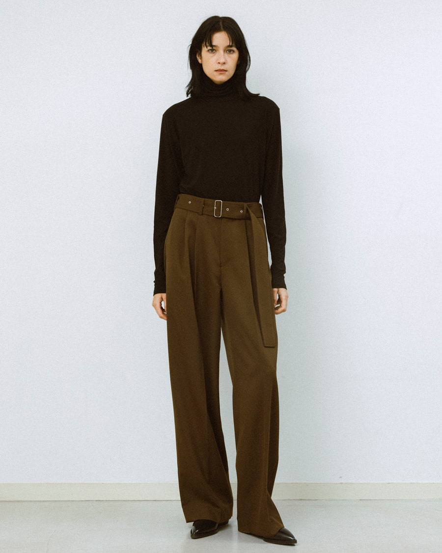 定番の人気インナー用ハイネックトップ。ストレッチジャージの素材は肌触りが良く、柔らかでなめらかな質感が特徴のリヨセルを使用。ストレッチ性にも優れ、首に沿うように設計されたデザインはカットソー、ニット、シャツと様々なスタイリングにプラスすることで、08sircusらしいスタイリングが完成する。