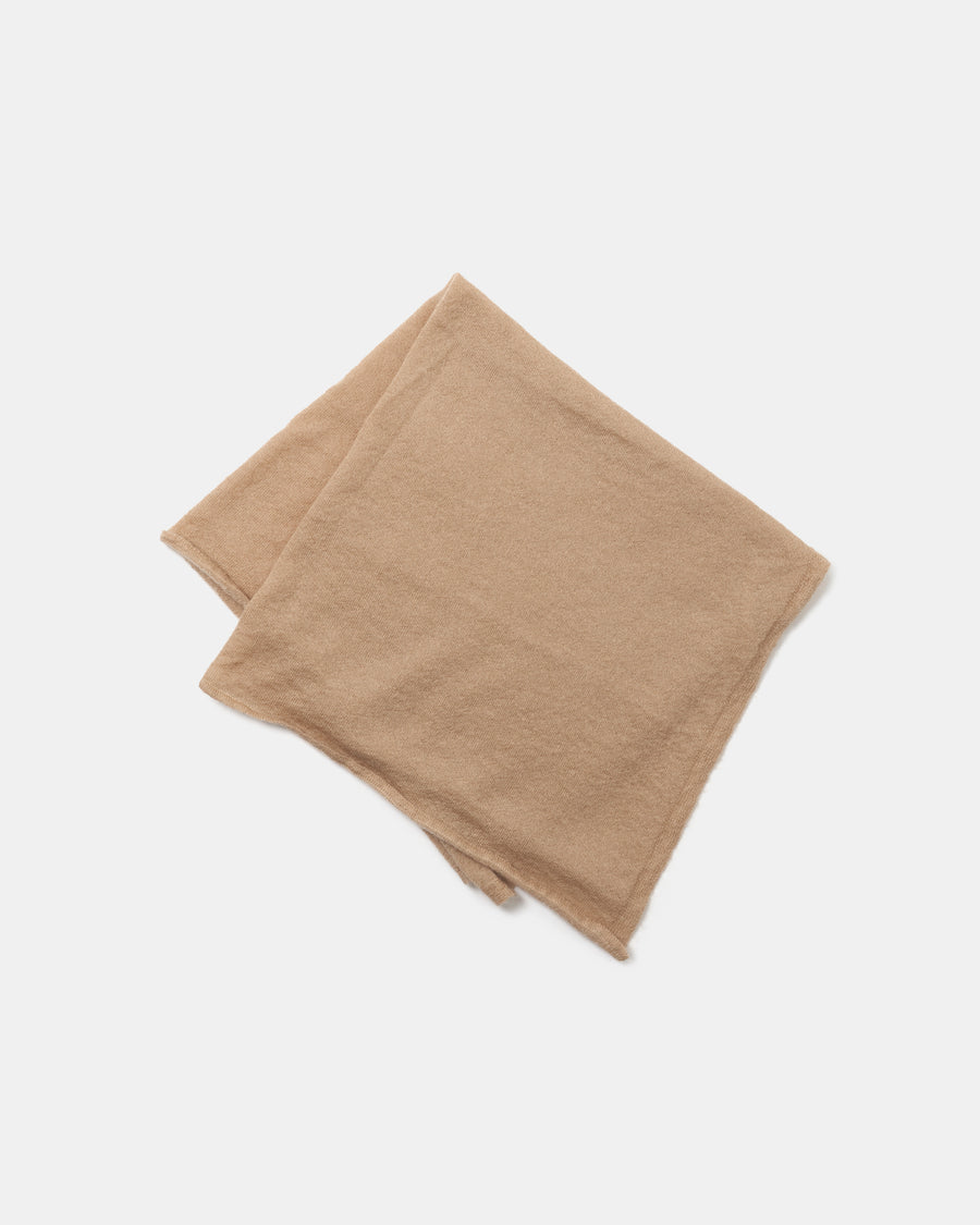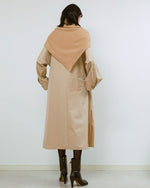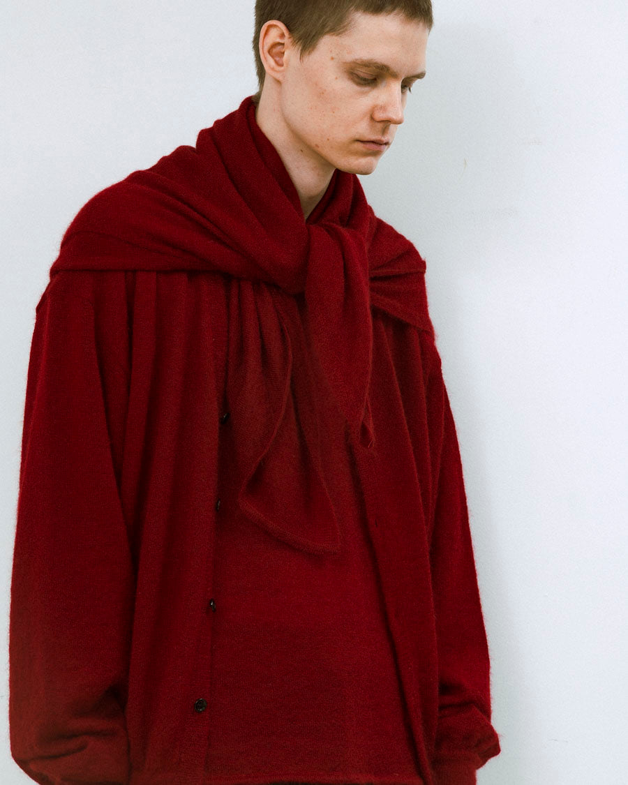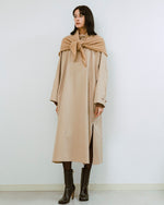 スタイリングに合わせて首元に巻いたり、フードのように纏ったりと、シルエットに動きを生むアレンジが可能。