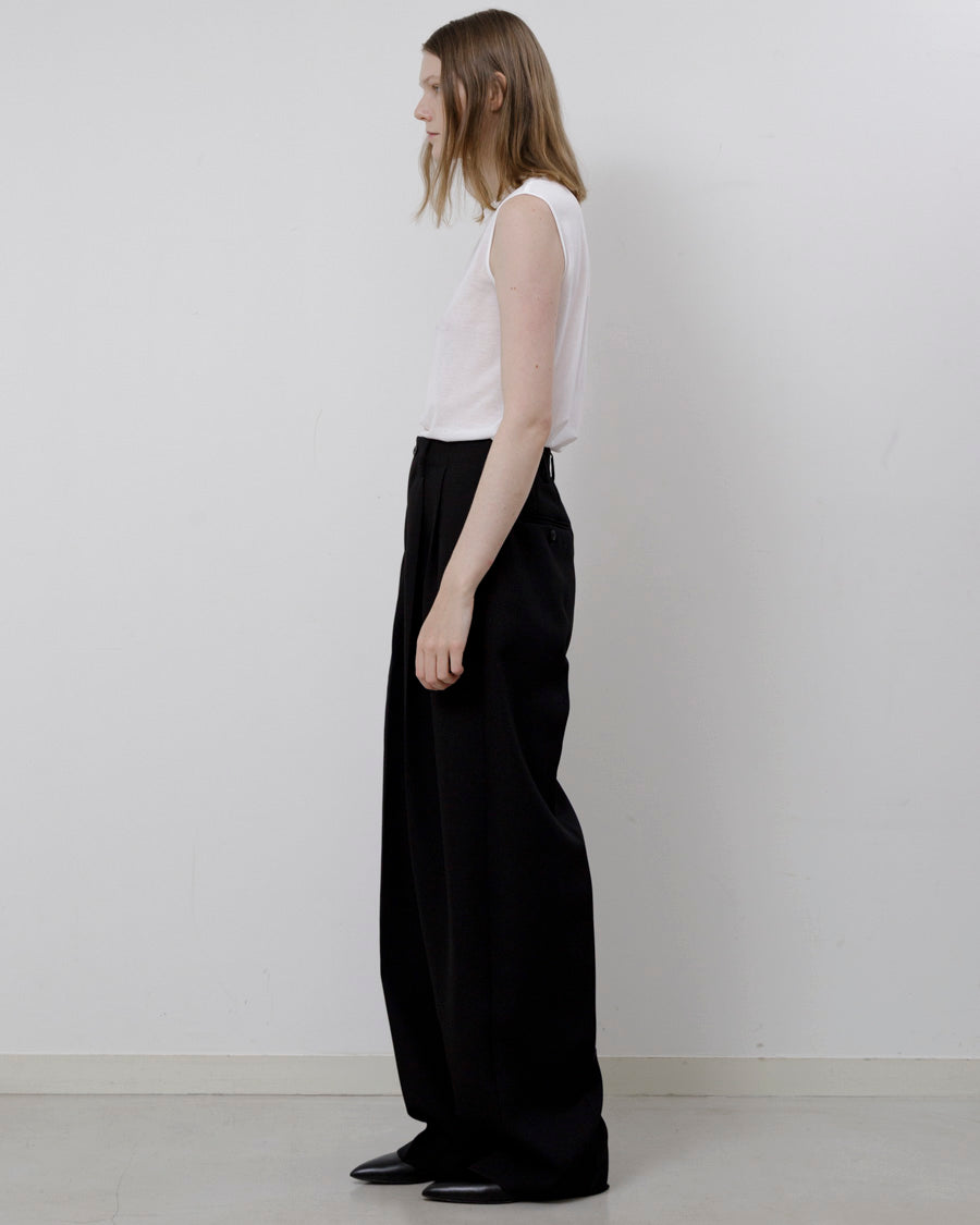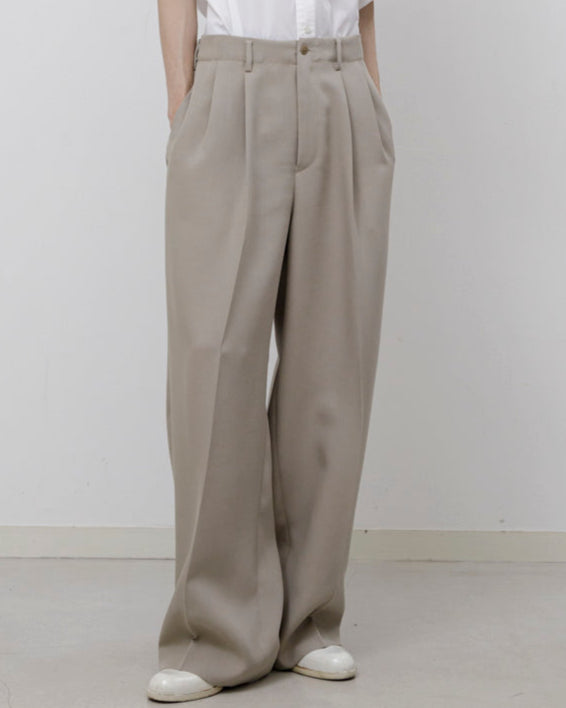 ワイドなボリュームが特徴的な2タックワイドパンツ。