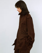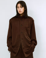 素材には、上品な光沢のヴィスコースサテンを使用。肉厚でありながらも柔らかく、ウールのようなハリ感と美しい落ち感を兼ね備えたエレガントな1着。