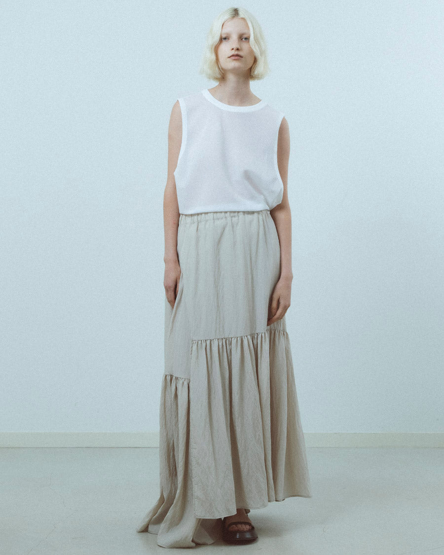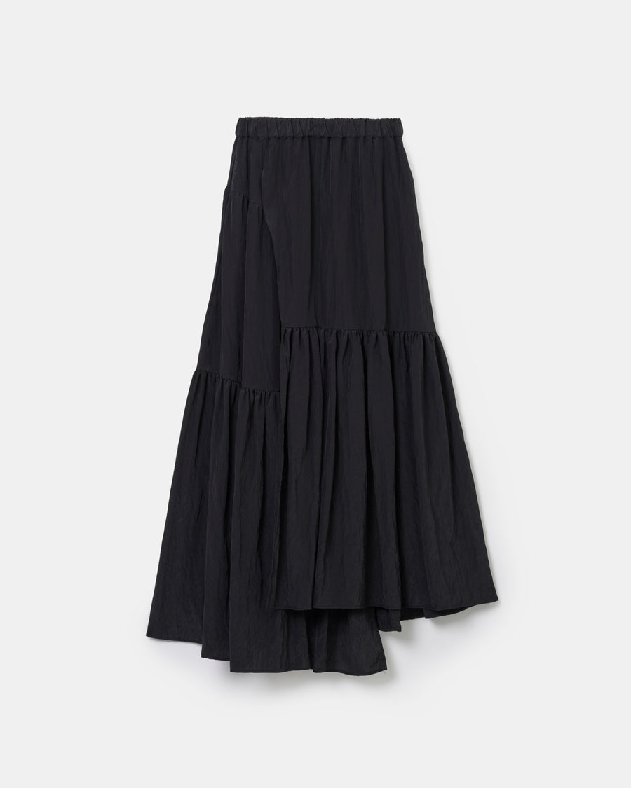 ギャザーをレイヤードしたデザインのギャザースカート。