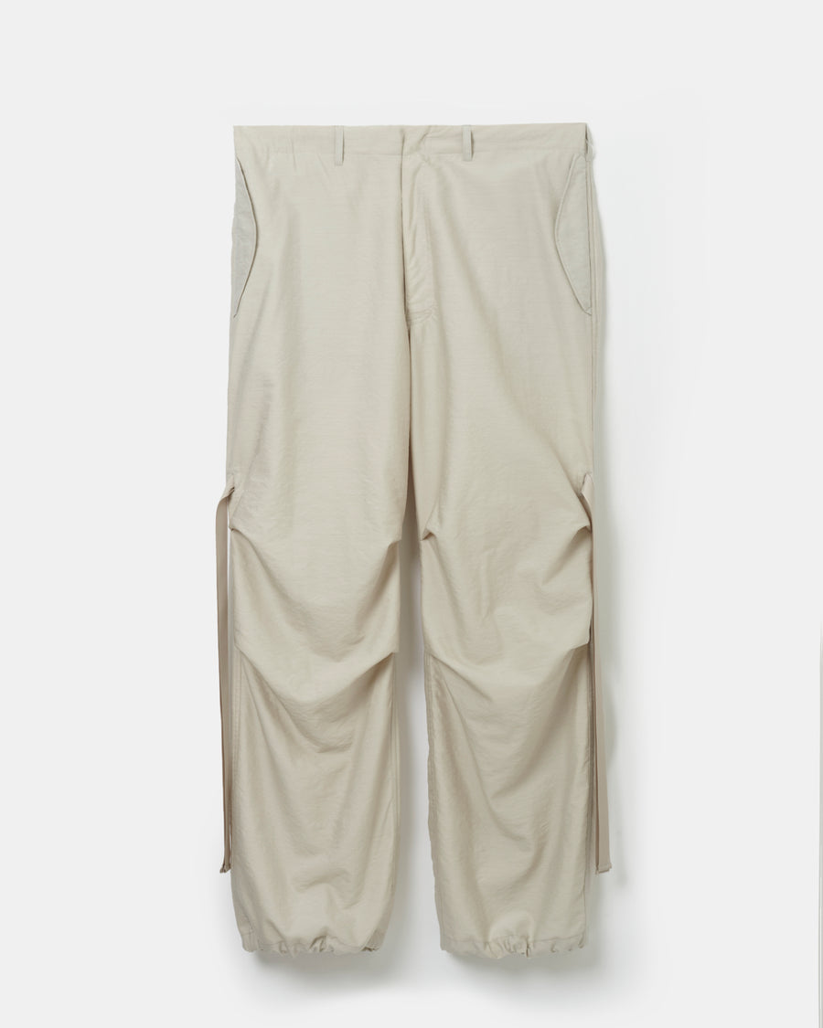 素材は上質なウールとナイロンで織られたポプリンを使用。微起毛させた柔らかで滑らかな表面感と、膨らみと軽やかさを兼ね備えた素材感がエレガントな印象を際立たせる。