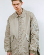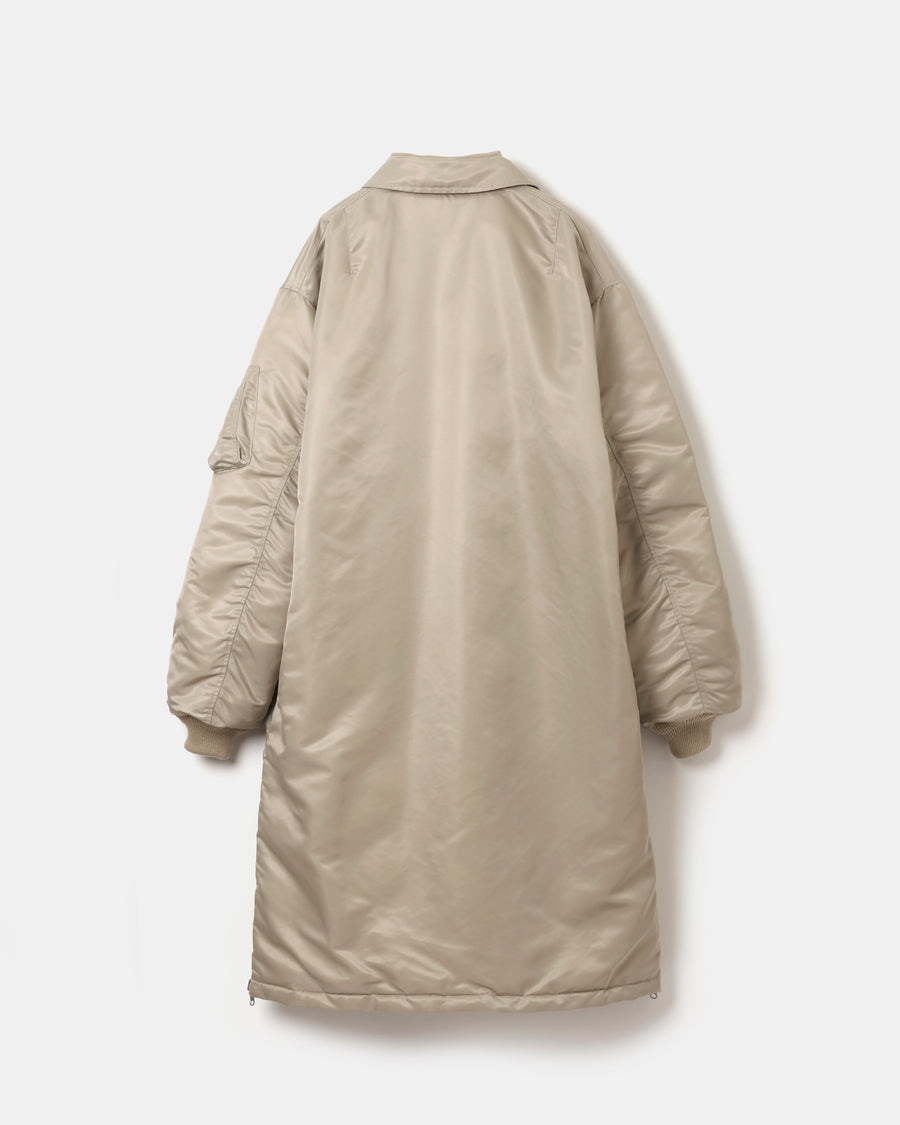 日本のインナーダウンウェアブランド"TAION"とのコラボレーションによって復刻された、リバーシブル仕様のロングMA-1コート。