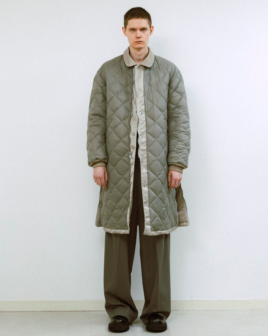 表面はマットでエレガントなナイロン、裏面はダウンのキルティング構造という異なる表情を持ち、気分やスタイリングに応じた着こなしが可能。