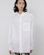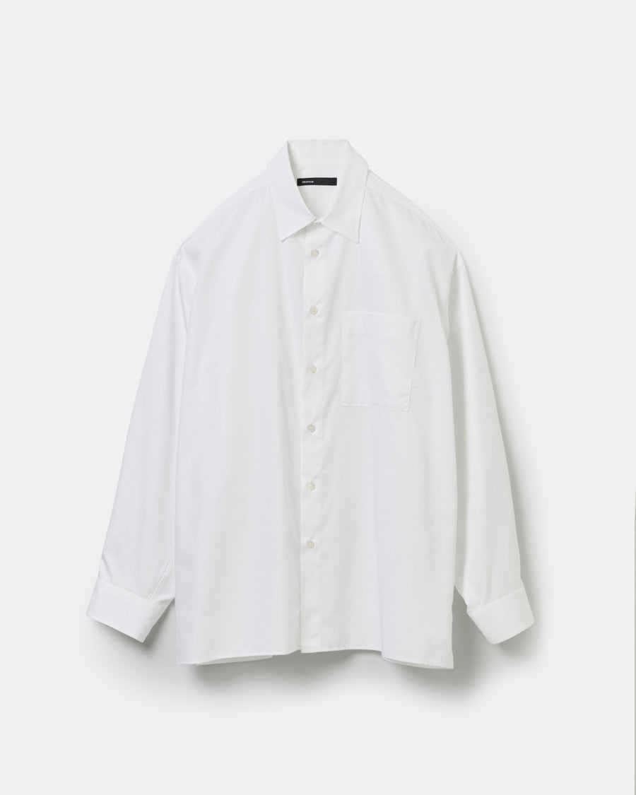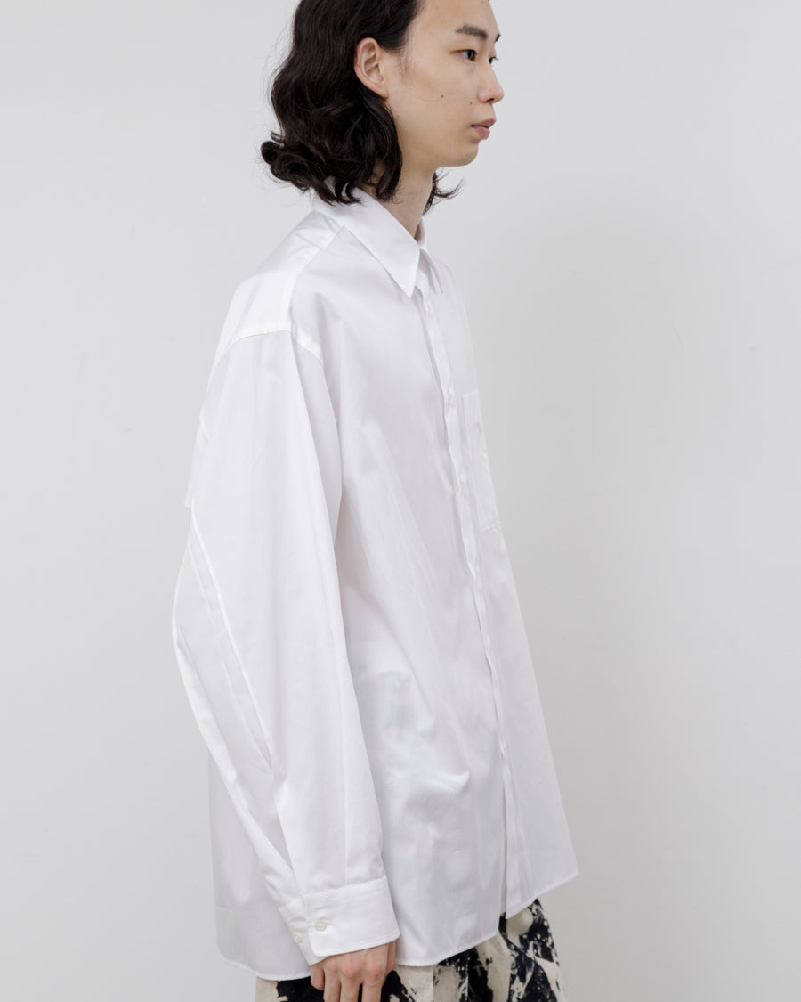 素材は繊細なコットンタイプライターを使用。上品な表面感がクリーンな印象を与え、程良い柔らかさと膨らみのある素材感がシルエットを美しく魅せる。