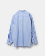 袖にボックスプリーツを入れることで立体的なシルエットに仕立て、ベーシックなアイテムに捻りを加えた。衿の角度や高さも着用すると美しく収まり、08sircusが得意とするパターンメイキングの巧みを感じる1着。