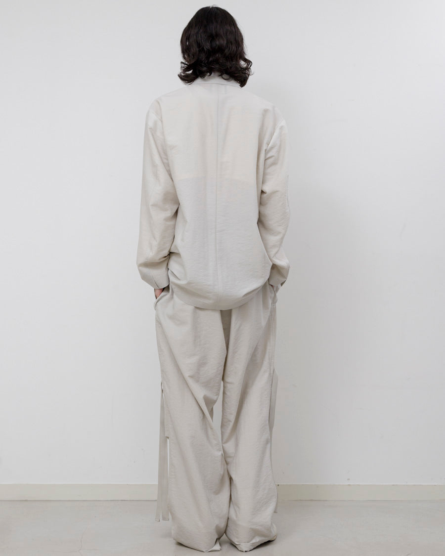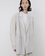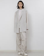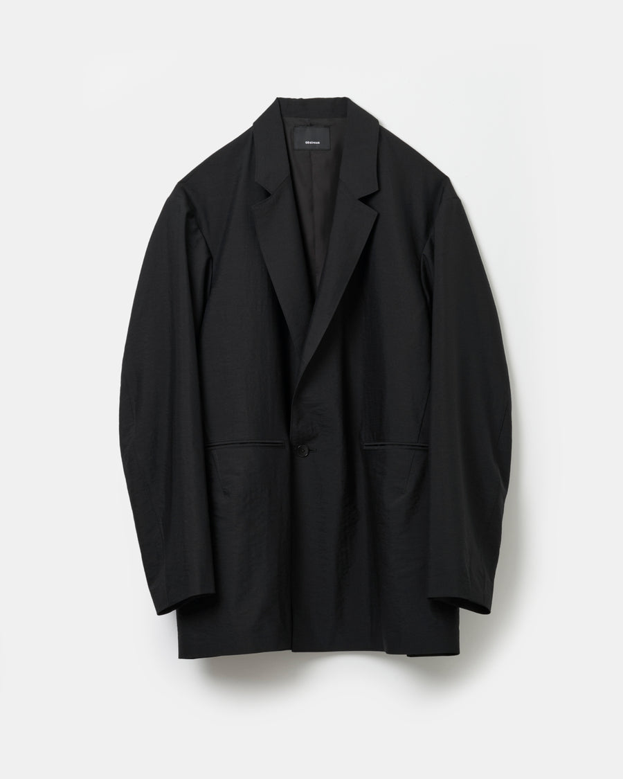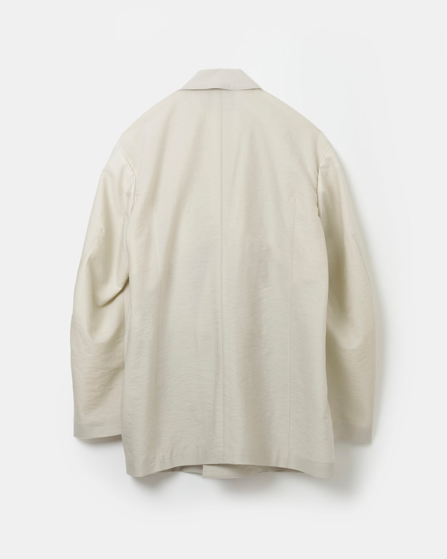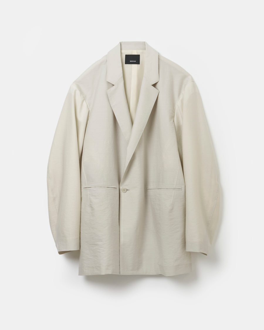 身頃をダーツで立体的に設計することでミニマルなデザインながら、パターンにこだわり抜いた1着。肩のラインを程よくドロップさせ、丸みを持たせることで、かっちりとした印象の中に絶妙なラフさをプラスした。