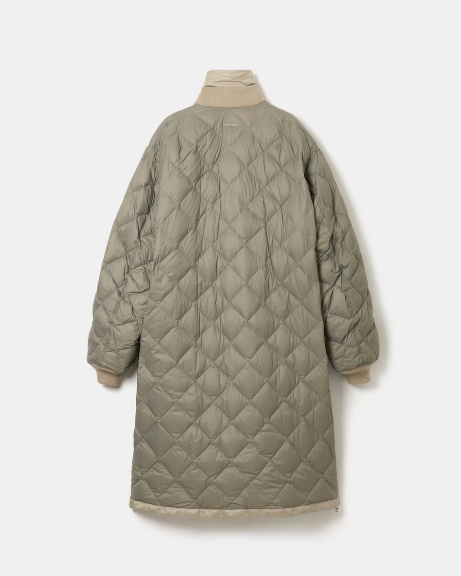 表面はマットでエレガントなナイロン、裏面はダウンのキルティング構造という異なる表情を持ち、気分やスタイリングに応じた着こなしが可能。
