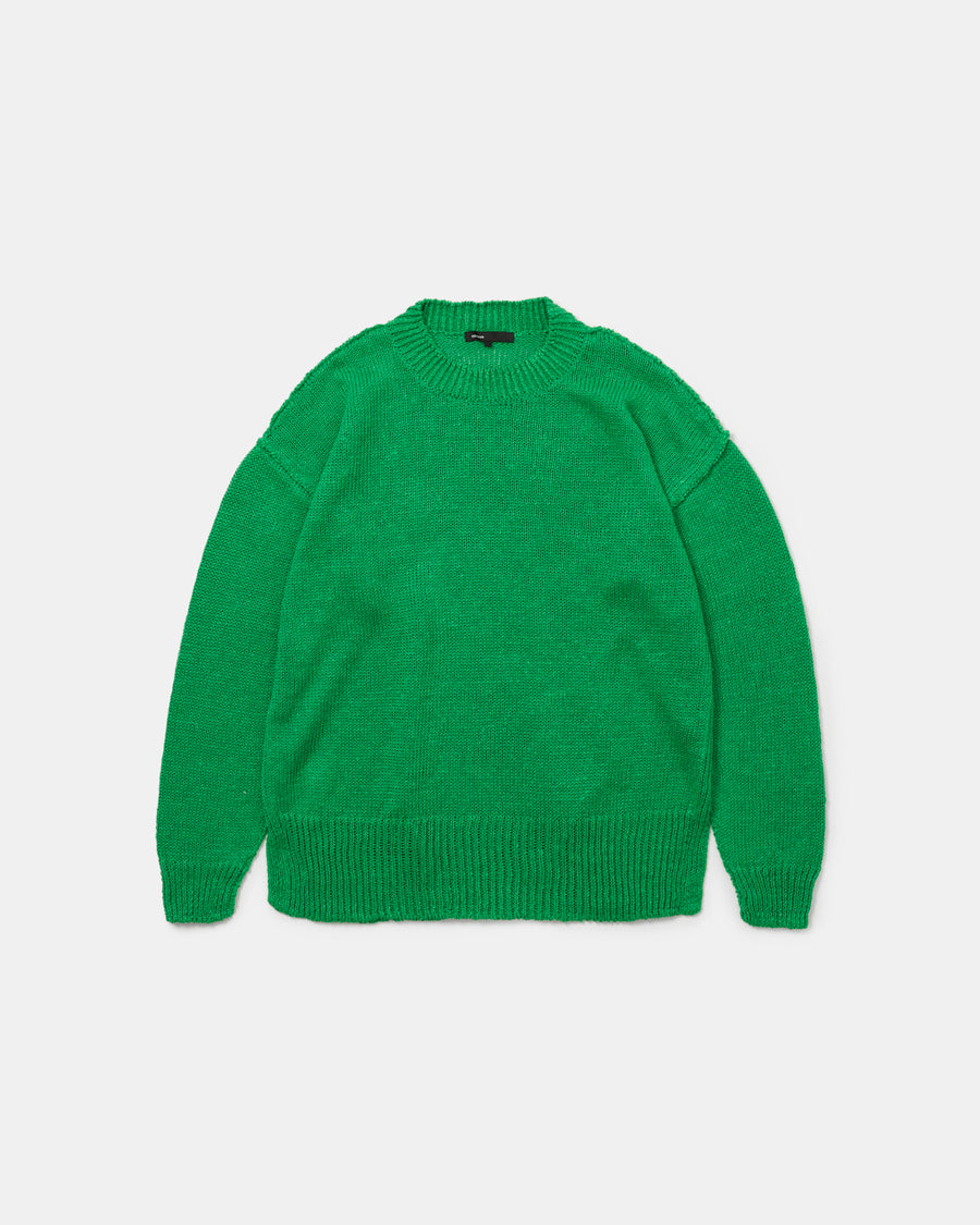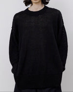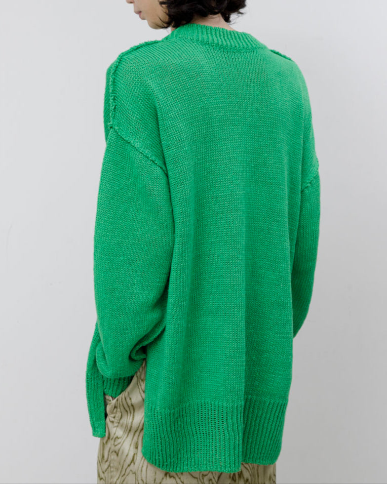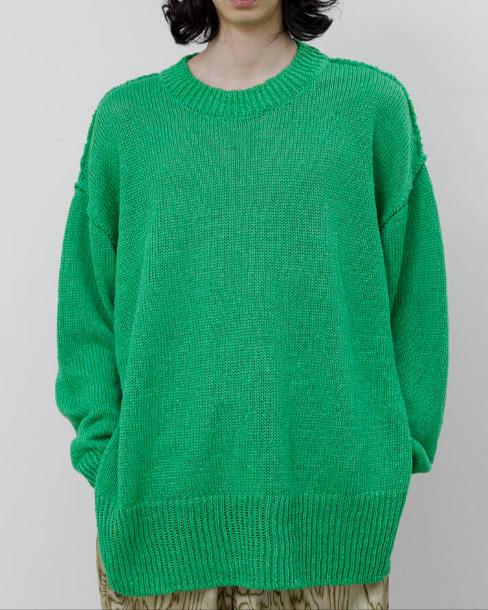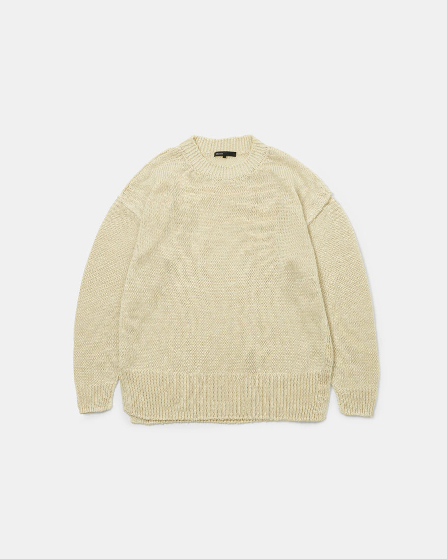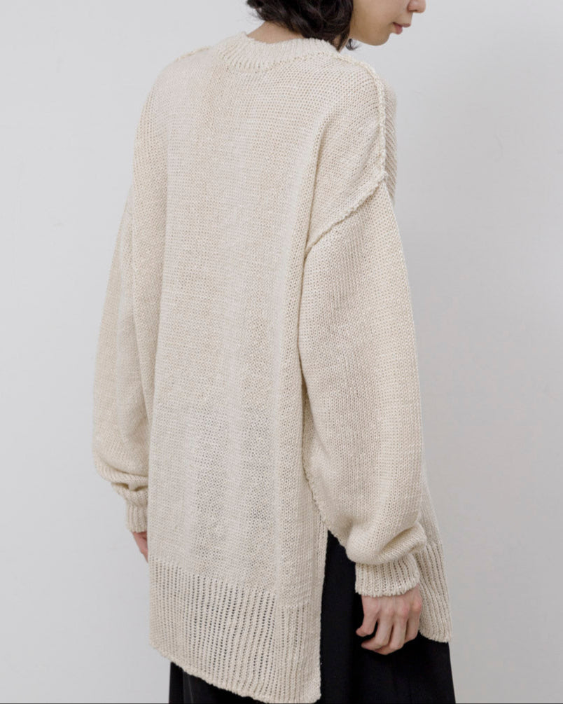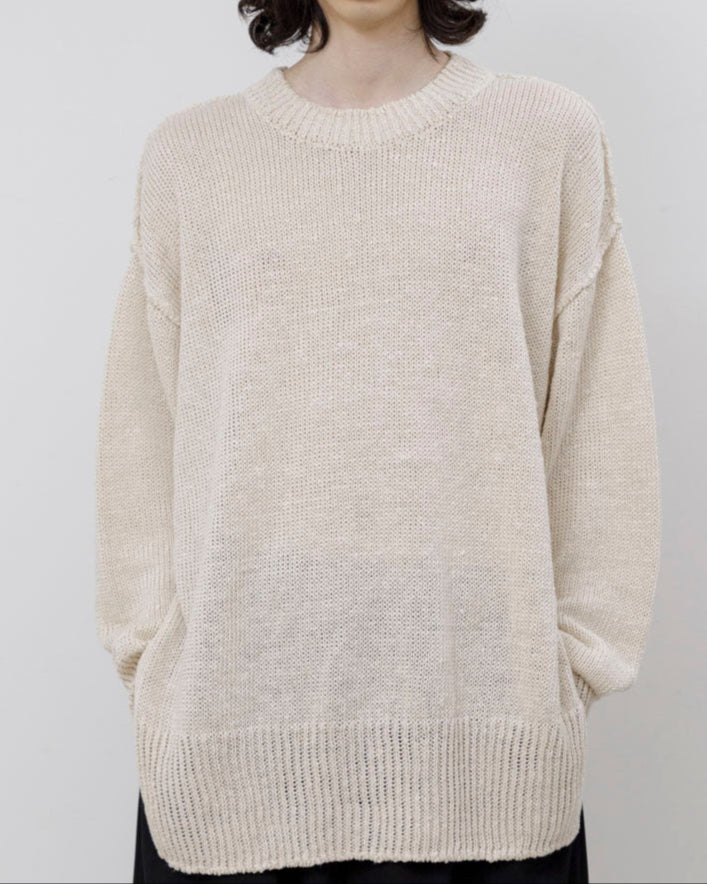 太番手のリネンでざっくりと編んだローゲージクルーネックセーター。