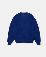 膨らみのあるポリエステルの糸で編み上げたクルーネックセーター。