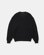 タテの目が引き立つような立体的なリブ調の編み柄は、シンプルでありながらスタイリングの軸になる存在感ある1着。