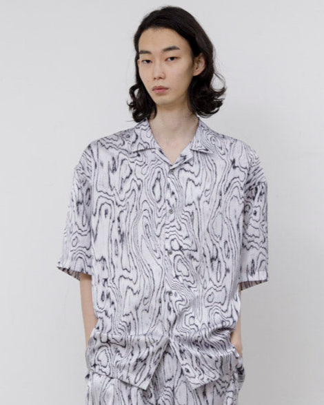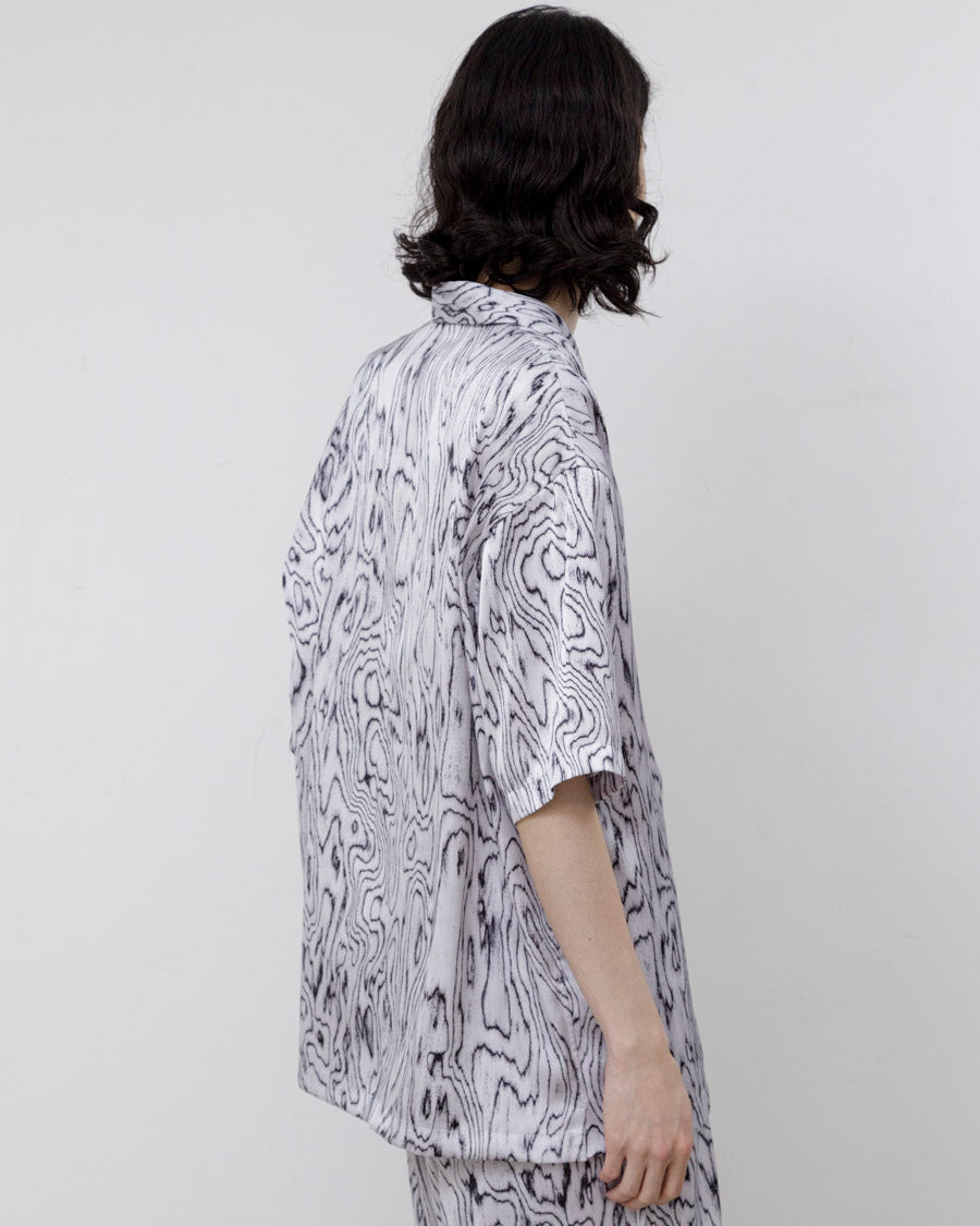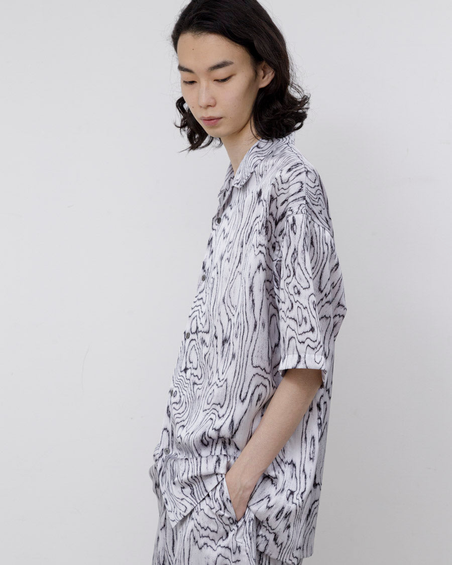 ヴィンテージのような軋みのあるサテンは程良い生地厚でシワになりにくく、イージーケアな素材を使用。どこかエレガントさが漂う1着。