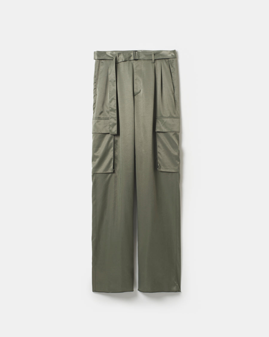 Satin belted cargo pants
