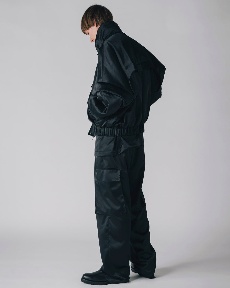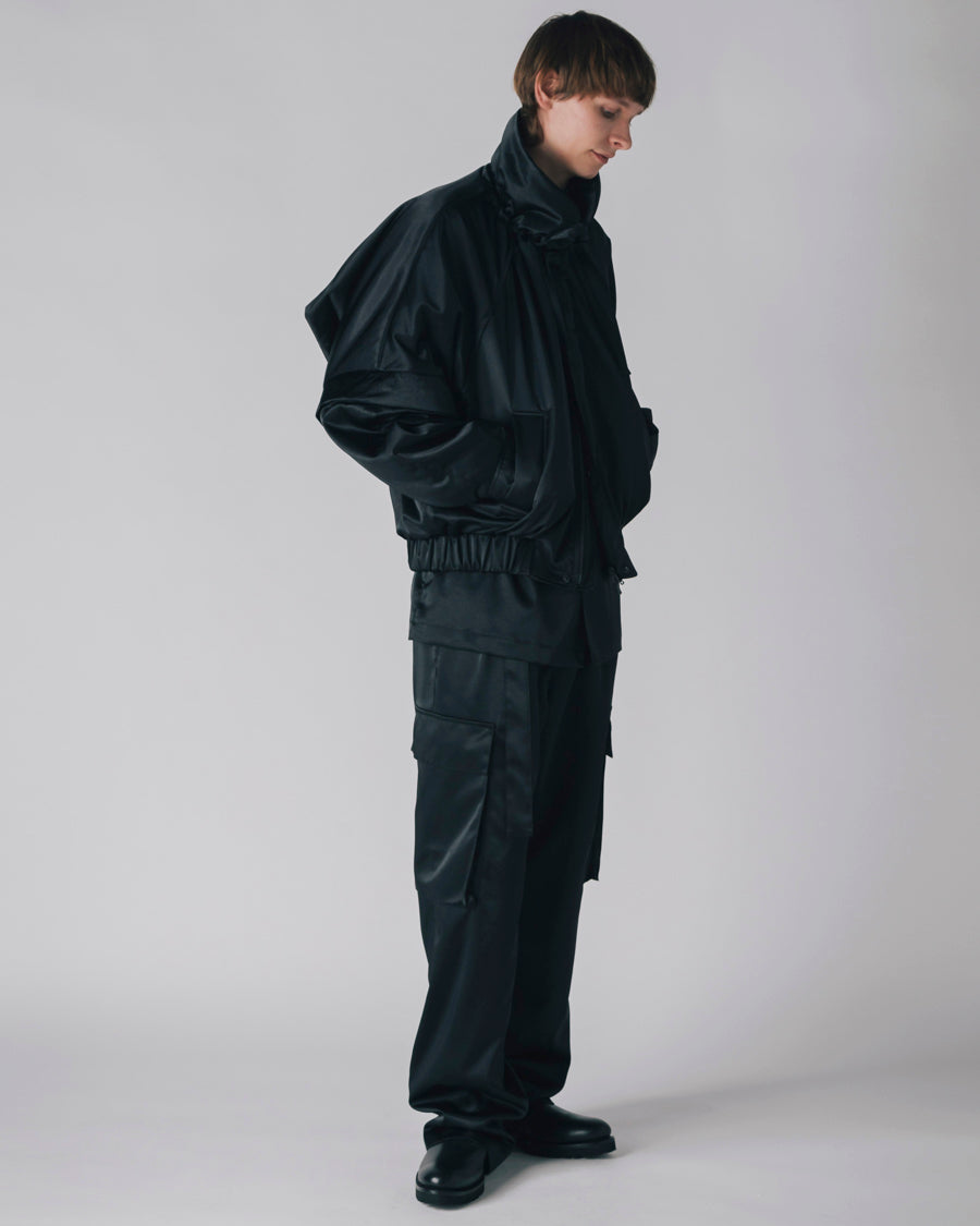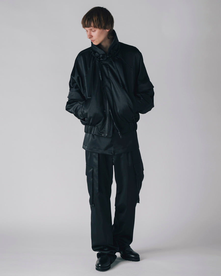 生地はヴィンテージのような軋みのあるサテンを使用し、エレガントで上品な雰囲気に仕上げた。カジュアルとエレガンスを絶妙に融合させたジェンダーレスなデザイン。