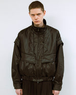 ヴィンテージレザーのような質感が特徴的なショートブルゾン。