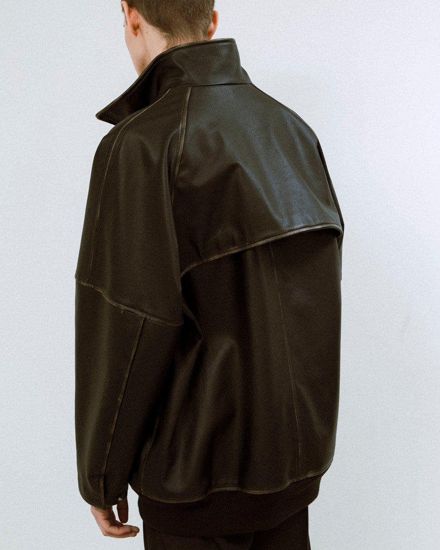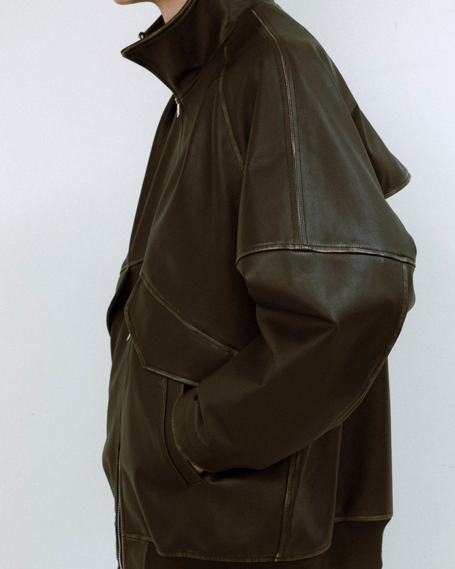 ヴィンテージライクに仕上げたゴートレザーのミドル丈ブルゾン。