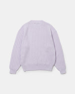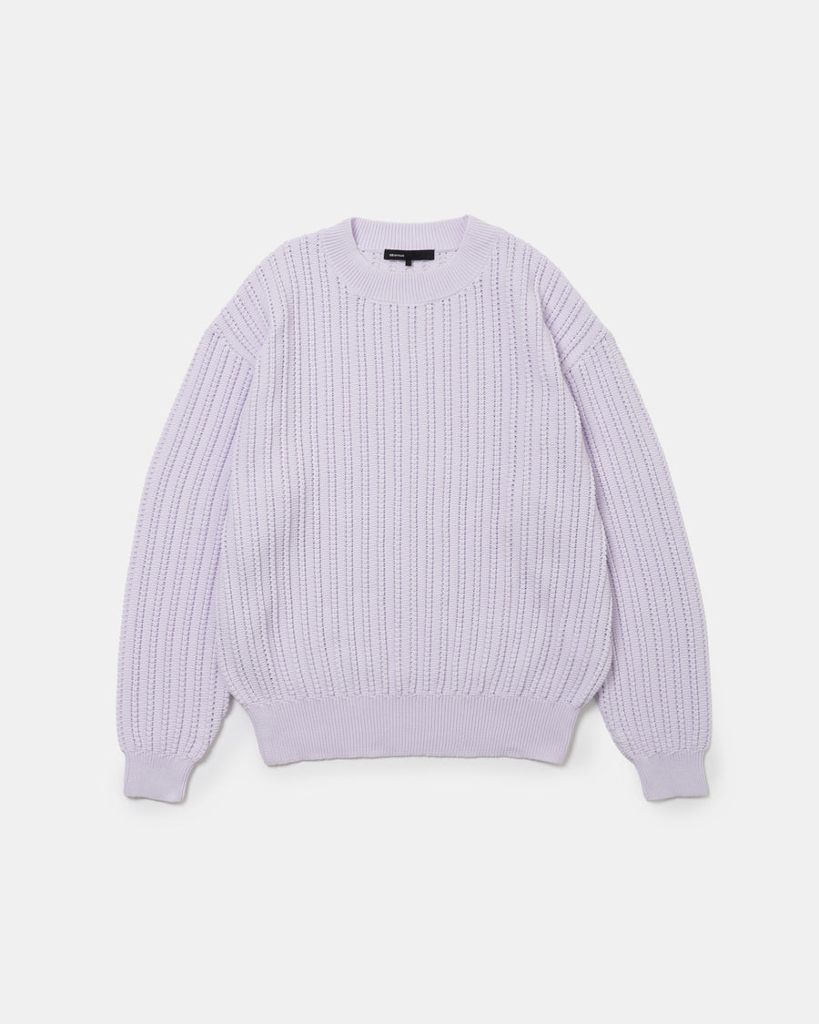 膨らみのあるポリエステルの糸で編み上げたクルーネックセーター。