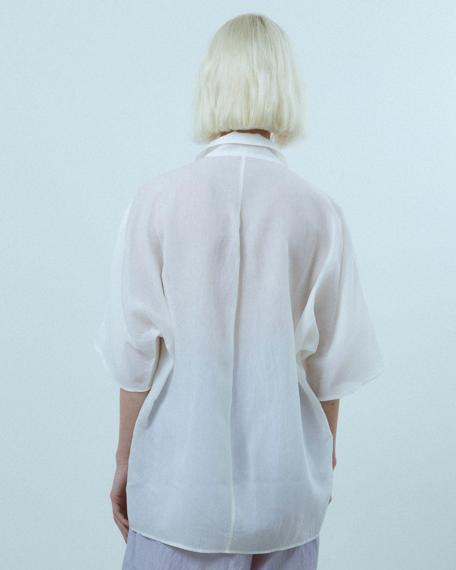 Cupro shrink back dolman split shirt