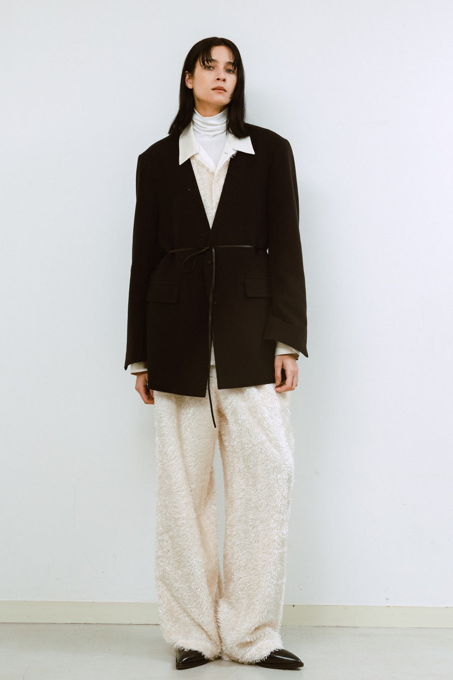 ファーのような雰囲気のカットジャガードは、美しい光沢を帯びながら、均一にカットした毛足が繊細で上品なテクスチャーを生み出す。