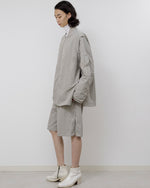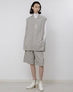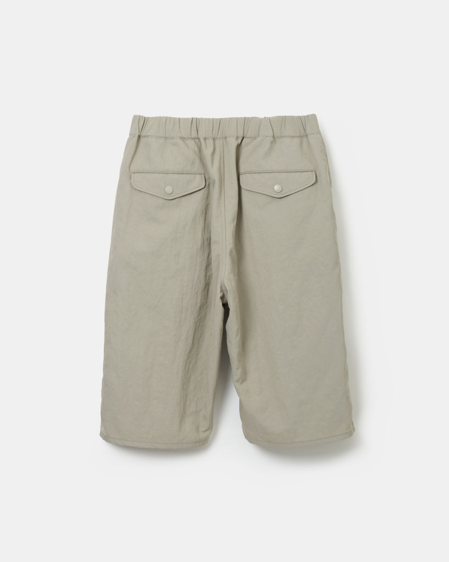 素材はリサイクルナイロンツイルにシワ加工を施した生地を使用。クリーンな表面感で、加工によるシワもどこかエレガントな表情に。