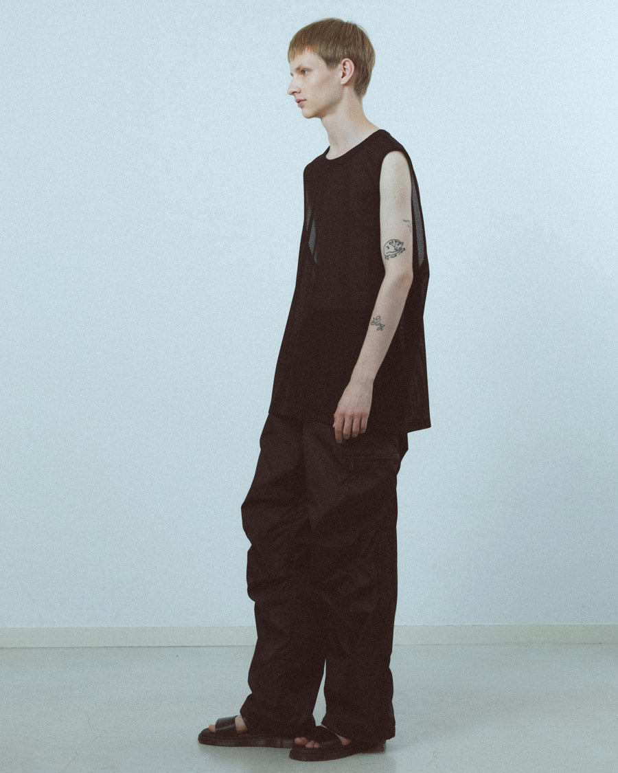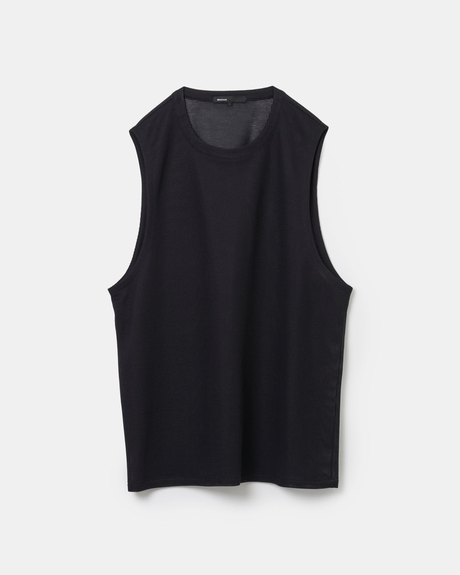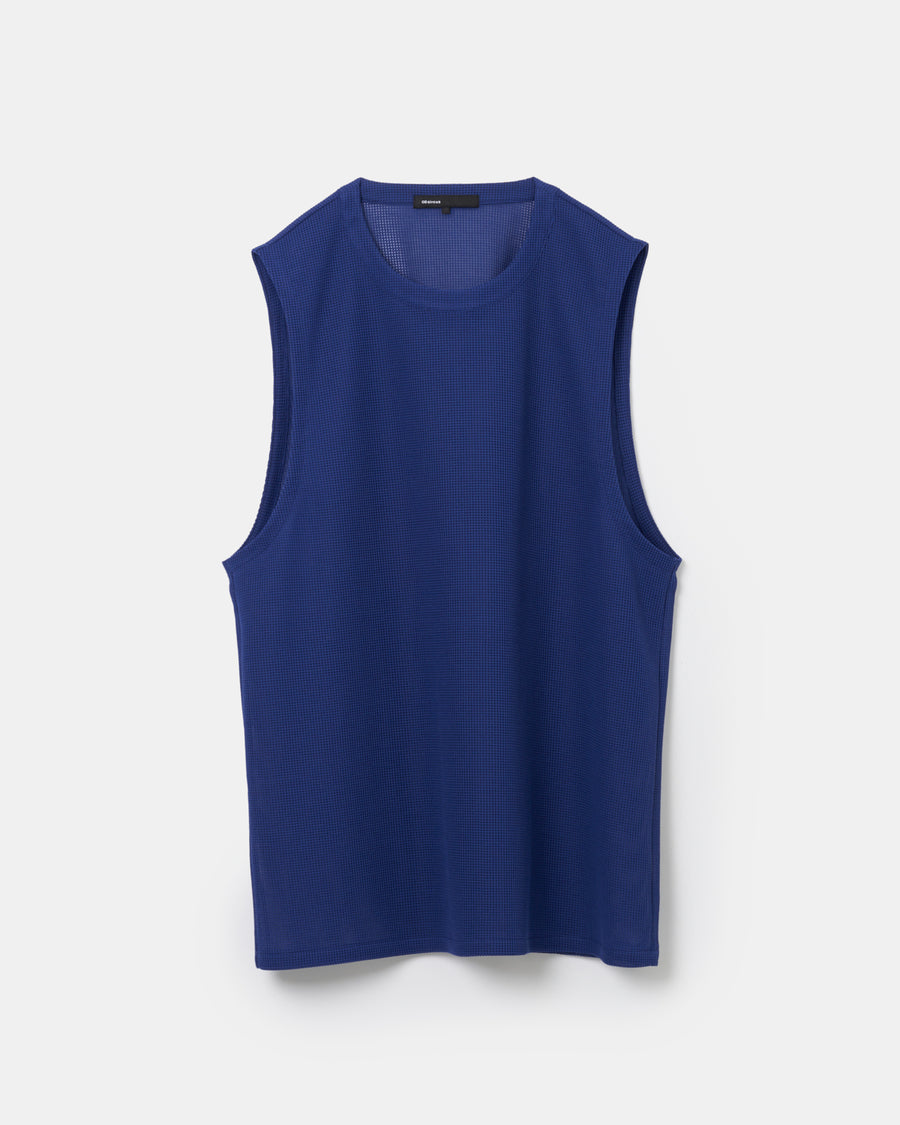 細やかでフラットなワッフル組織が上品な質感を生み、クリーンな印象に仕上がっている。ゆったりとしたボックスシルエットと軽やかな透け感で、レイヤードスタイルにさりげないニュアンスを添える1着。