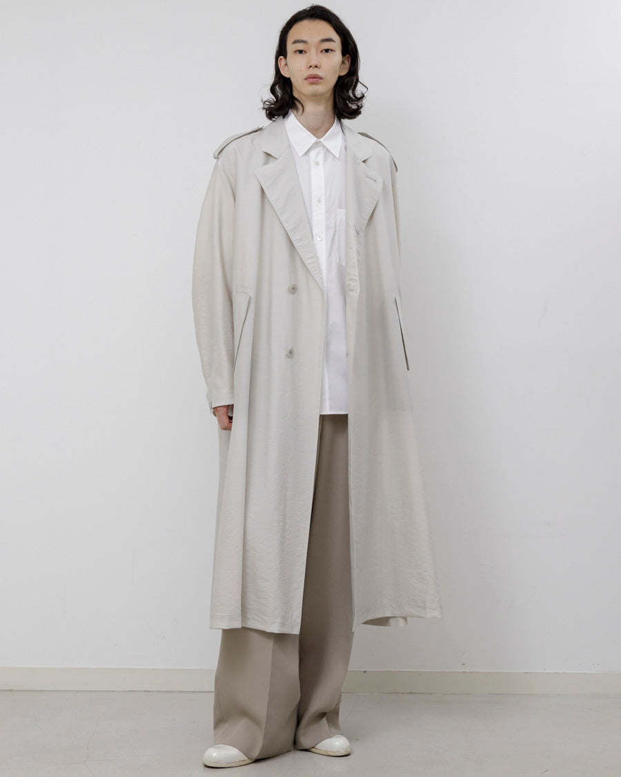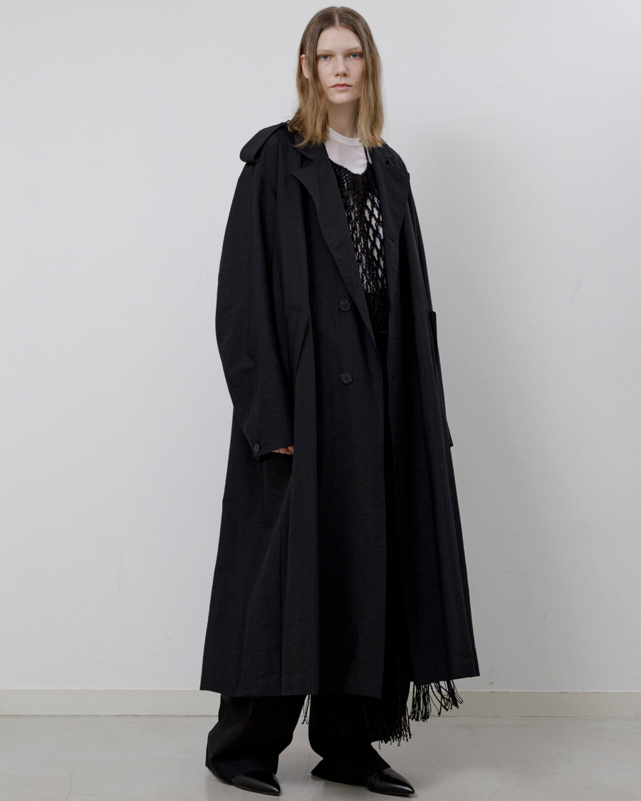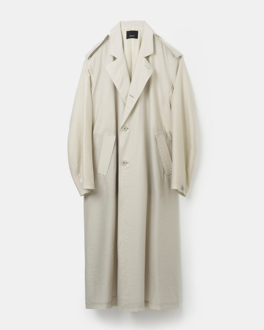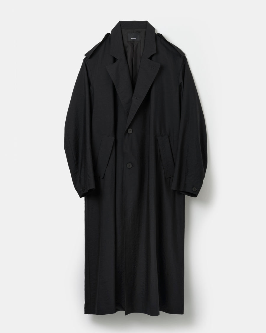 クラシックなオーバーコートを現代的なバランスとシルエットに落とし込み、都会的で洗練された印象を与える1着。