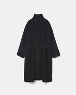 素材は毛羽立ちが少ない二重織りのウールメルトンを使用。上品でクリーンな質感は適度なハリと重厚感を持ちながら、柔らかくしなやかな風合いで、ドレープやフォルムを美しくキープする。